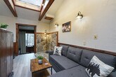 Stay in this beautiful Lodge at the River Front Resort, featuring a king-size bed and a suite with an oven and fridge. Located just 10 minutes from Downtown Elkins and 12 minutes from the Elkins-Randolph Co. Regional Airport, this apartment offers step-free access and free parking directly across the street. Enjoy streaming your favorite shows on the smart TV and feel at home with our professionally cleaned and sanitized environment. The apartment is beautifully decorated with unique furnishings and a warm ambiance, designed by a local. The fully stocked kitchen includes stainless steel appliances such as a fridge and electric stove, along with glasses, mugs, dishes, and cutlery. Complimentary Wi-Fi and coffee are provided for your convenience. Enjoy free parking directly across the street from the apartment. Situated right on the river, this location is perfect for fishing or any other wildlife adventures. Despite being in an area where internet isn't perfect, we offer the best Wi-Fi available. The apartment is conveniently located near Downtown Elkins and the Elkins-Randolph Co. Regional Airport, making it easy to explore the area. The apartment features keyless entry with a code provided after booking. While the apartment is part of a duplex setup with a concrete wall in between, noise is rarely an issue. Guests are expected to treat the place with respect, and any arising problems will be addressed promptly, although there is no on-site staff 24/7. Profiles with a lower review rating than 4 stars may face booking restrictions. The apartment is equipped with the best Wi-Fi available in the area, perfect for streaming and remote work-friendly activities. [SI]