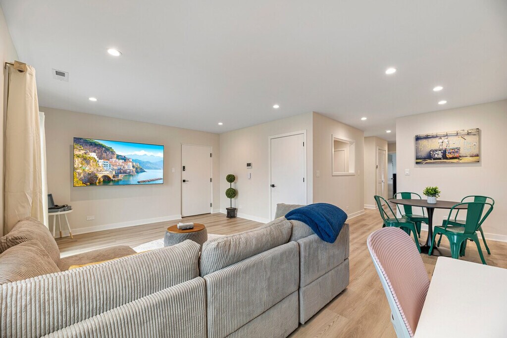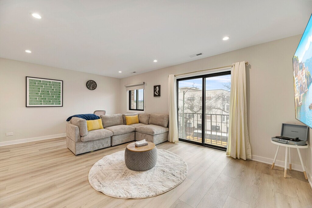 This unique property is a combination of two beautifully renovated apartments located on the 3rd floor of a charming building. With four bedrooms, including two with king-size beds, one with a queen-size bed, and one with two twin beds, and four gorgeous bathrooms, this home offers a spacious and modern living experience. Enjoy the convenience of smart TVs and games, and feel at home in this stylishly furnished space. Situated in a great location near Evanston and Loyola, you'll have easy access to all the city has to offer. Free parking is available in the rear. There are no parties or gatherings allowed at this home. Smoking in the property will result in an additional $500 cleaning fee. Exceeding the allowable occupancy of guests will lead to eviction. Guests must be 25 years of age to book this property and provide the full names and ages of all guests over 18 years old. Located in a 6-unit apartment building, guests are expected to be respectful of neighbors. All excess garbage can be placed in the bins in the alleyway. We appreciate your cooperation in maintaining a clean and respectful environment. Registration Number: R2 [SI]