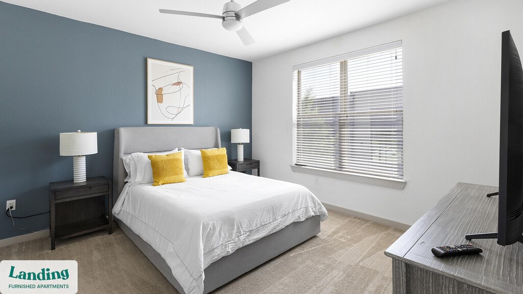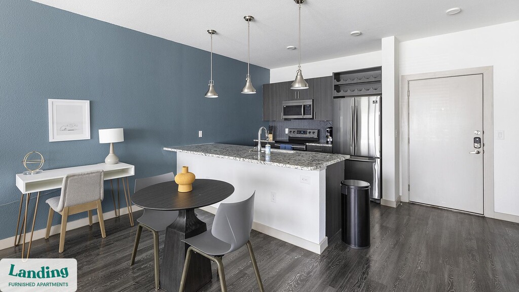 Landing offers flexible lease terms from weeks to months. Please always visit our website or contact us for the latest pricing & availability. Stay longer, save more: 6-Month Minimum base rent: starts at $2100/mo 12-Month Minimum base rent: starts at $1969/mo Landing offers flexible leases across a network of over 35,000 fully-furnished apartments throughout 375+ cities so you can rent on your terms, practically anywhere, and avoid the hassle of paying deposits or application fees. Visit to learn about all the benefits of a Landing membership, see our competitive up-to-date pricing, explore available apartments, take virtual tours, and make reservations online without jumping through traditional rental hoops. Landing's apartments at Alma Hub 121 are designed for comfortable, easy living, with the ability to stay as long as you like. Experience living with Landing Every apartment is outfitted with all the modern essentials including: custom-designed furnishings, a fully-equipped kitchen with deluxe stainless steel appliances, a gourmet coffee maker, premium linens, Smart TVs, and incredibly fast, reliable internet for working from home. When you live with Landing, you'll enjoy a hassle-free experience with the added benefit of 24/7 access to our dedicated member experience team. Some of the nitty-gritty: a background check and proof of income are required; we're completely smoke-free; bundled utility packages and pricing vary based on length of stay; pet-friendly options available; listed price reflects a 12-month minimum stay.