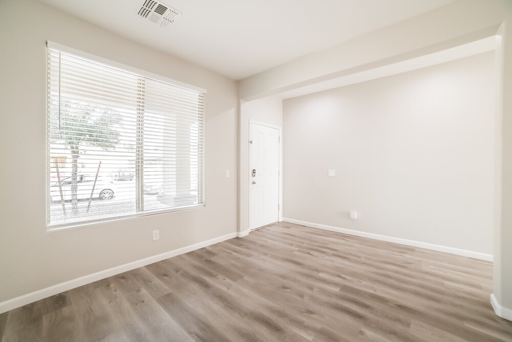 Tenga en cuenta que nuestras casas están disponibles por orden de llegada y no se reservan hasta que el arrendamiento sea firmado por todos los solicitantes y se cobren los depósitos de garantía. ¿Quieres hacer un tour por tu cuenta? Haga clic en el botón “Mostrarse” en la lista de esta casa o llame para registrarse para una presentación autoguiada en el momento que mejor le convenga. Esta casa cuenta con la aplicación para casa inteligente Progress Smart Home - Progress Residential, que te permite controlar la casa de forma segura desde cualquiera de tus dispositivos. Obtenga más información en Venga y recorra esta magnífica casa de alquiler en Phoenix, Arizona. Tendrá cuatro dormitorios, dos baños y medio, una habitación familiar y un garaje para dos automóviles. La sala de estar es de planta abierta y tiene hermosos pisos de vinilo. La sala de estar cuenta con abundante luz natural y un ventilador de techo iluminado. En la cocina, encontrará encantadores gabinetes grises y encimeras de cuarzo blanco. Apreciará los electrodomésticos de acero inoxidable y la despensa. Cuando llegue el momento de relajarse, diríjase al dormitorio principal. Disfrutará del amplio vestidor y los lavamanos con tocador doble en el baño en suite. El patio trasero vallado está listo para que sus mascotas jueguen. ¡Ven y haz un recorrido hoy mismo!