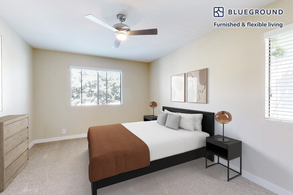 Staged photos of matching layout and similar décor Imagery shows same floorplan and building, and similar décor as we finish photographing this new unit. Be the first to rent! Discover the best of San Diego, with this two bedroom apartment in University City. It’ll be easy to simply show up and start living in this furnished apartment with its fully equipped kitchen, living room, and our dedicated, on-the-ground support. (ID #SAN757A) The advertised rate of $3,970/month is the lowest available price, based on a 12 month(s) and 30 day(s) stay with a move-in date of October 29, 2025. Rates vary depending on the duration of stay, season, and other parameters. For exact pricing and additional pricing components, please visit our website and enter your desired move-in and move-out dates. The rate is applicable when billed upfront; it can be higher if billed in multiple payments. Brokers are welcome to reach out. Were you looking for an unfurnished lease? Try Blueground instead and upgrade from unfurnished to furnished living: - Furnished at rates comparable to unfurnished - No setup or furniture costs - save thousands - Move-in ready - save time, just bring your suitcase Designed with you in mind Gorgeous furniture, fully equipped kitchen, smart TV, and a premium wireless speaker are just a few of the amenities you’ll find inside this two bedroom apartment. Ideally located in San Diego, you’ll find a lot to love outside as well. When you’re ready to relax, you’ll be happy to discover every Blueground bedroom comes with superior quality mattresses, luxury linens, and cozy towels. We handle everything so you can simply show up and start living. This apartment also offers in-apartment laundry. Amenities Building amenities unique to this two bedroom apartment include an on-site: - Dryer - Washing machine - Parking Arrival and ongoing support The entire apartment is yours to enjoy! Throughout your stay, you’ll have access to our Client Experience team through the Blueground App. You can schedule additional cleanings, submit maintenance requests, and view our neighborhood recommendations with just a few taps. We’ll share all details upon confirmation of your stay. Ideally Located This furnished apartment is located in University City, a bustling area right next door to the University of California, San Diego. Popular with students and young professionals alike, University City is a great introduction to the city. The dining scene includes everything from cheap eats and college bars to high-end regional Mexican fare, and there are several large grocery stores for anyone who prefers to cook for themselves. The highlight of University City's shopping scene is the outdoor Westfield UTC mall, which has a variety of stores, a food court, and even its own ice rink. On the weekend, head to Rose Canyon Open Space Park for some gorgeous hiking or jogging. Other things to note Photos show same floorplan and building, and similar decor as we finish photographing this new apartment. This Blueground apartment has flexible lease options, allowing you to book it for one month, a year, or more. Parking is offered based on availability and is subject to a fee. Please keep in mind that this is a walk up building. We take great pride in ensuring every photo displayed is shot in our own units with our actual furnishings. That said, we regularly refresh our decor and furniture arrangement, which may differ from what’s pictured. [SI]