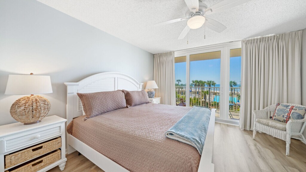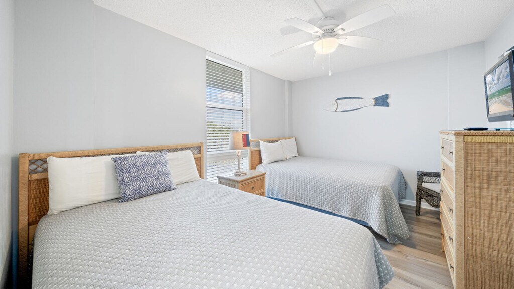 Feel at home in Dunes of Panama B206, a bright and cozy beachside retreat with stunning Gulf views from your private balcony. This condo features a full kitchen equipped with a coffee maker, cutlery, cookware, microwave, glassware, and silverware. For your convenience, a washer and dryer are provided. Entertainment options include a flat-screen TV and smart TVs. The condo also features a spacious walk-in shower. This is a pet-friendly property with a fee of $200 per pet, with a limit of 2 unless otherwise approved. Weight limit is 25lbs. Restricted breeds include Pit Bull, Doberman, Rottweiler, and German Shepherd. Guests must complete the Pet Registration Form and provide up-to-date rabies vaccination details. Covered parking is available, with a maximum of 2 vehicles per condo. Explore the best attractions near Panama City Beach, including Pier Park, St. Andrews State Park, Shell Island, and Shipwreck Island Waterpark. Savor the best of Panama City Beach dining at Firefly, Schooners, Pineapple Willy’s, Grand Marlin, and Dat Cajun Place. Smoking and vaping are not permitted inside the property. Smoking outdoors must occur at least 10 feet away from doors, windows, and balconies. A $500 fine will be charged for indoor smoking, plus any necessary cleaning or damage repairs. Pets must wear a current rabies tag when walking on the premises. Management reserves the right to request proof of vaccination in cases of aggressive behavior or if a pet bites another guest. Guests must be over 25 to book this property. Check-in is at 4:00 PM with contactless entry, and a unique entry code will be sent 10 minutes prior to check-in. Check-out is at 10:00 AM. Ideal for remote work, this condo offers comfortable spaces for working remotely and high-speed Wi-Fi. [SI]