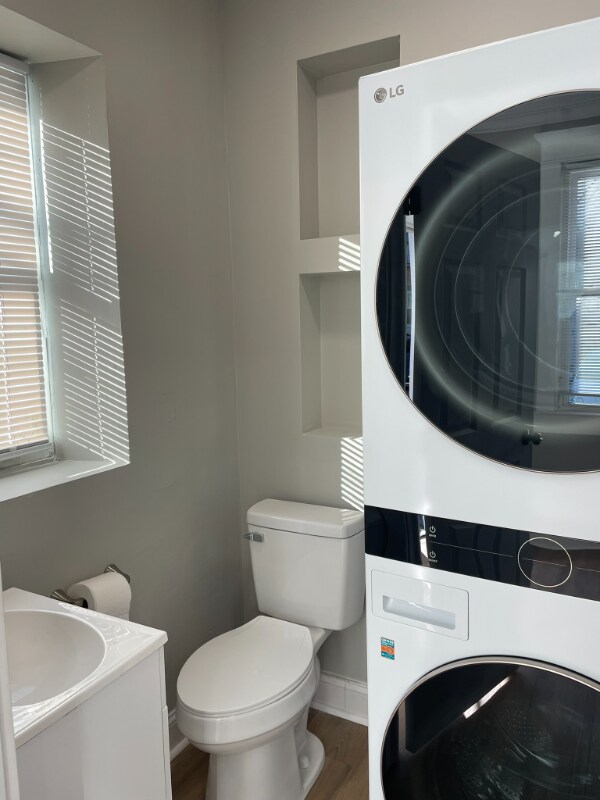 Property Id: 1682161 This one side of a duplex is walking distance to NCH and amenities. It was renovated to include new windows with blinds, high efficient heat/AC, can lights and LVF throughout, and full paint. Front porch leads to the open living and dining areas with decorative fireplace. Back side features a brand new kitchen with granite counters, white shaker cabinets and all new stainless steel appliances. Coat closet for guests and included stackable washer and dryer within the first floor half bath. Second floor include 3 bedrooms all with ceiling fan/lights, brick wall in one room and a full bath with new shower/tub, vanity and fixtures. The third floor provides a quiet master sanctuary with ensuite full bath with double vanity and two large closets. Full unfinished basement provide ample storage space. Parking is on street with permits. Tenants are responsible for all utilities, and refundable pet deposit and monthly fee apply. ?