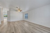Come see this beautiful three bedroom two bath pool home today. This home features luxury vinyl plank flooring, an upgraded kitchen with granite countertops, stone featured island and custom cabinets. The backyard offers a fully fenced pool and turf. The primary bathroom has been upgraded with luxury vinyl plank flooring, custom tile shower and custom vanity. The primary closet boasts built in features. The living room offers a fireplace for a cozy evening in. Ceiling fans located throughout the home.