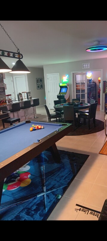 Property Id: 2260955 Discover the beauty of Punta Gorda from this 3-bedroom house. This cool property features 2 queen beds, 1 bunk bed, and 1 sofa bed, perfect for a group getaway. With amenities like a washing machine, AC, and WiFi, your Welcome to paradise. Your oasis awaits you. Whether it's a day at the (2)pools, enjoying the sun and fun. Or an indoor day of games, arcades and barbecue. This Villa has it all! Here your adventure awaits you. With arcade game classics, with multiple stand up machines..the gamer in you will not be disappointed. Or jump in on a game of pool, ping-pong,basketball, shuffleboard, darts or Karaoke. Or enjoy drinks by the fireplace and barbecue in the lanai. Tons of amenities, 5 min from airport.This beautiful 3 bedroom has it all. With a game/Arcade room. A beautiful covered lanai with grill and fire table. Bunk beds in the 3rd bedroom with pull-out couch. Also arcade games and plenty of board games with chess.The game/arcade room has stand up machines, pool, ping pong, shuffleboard, darts,Karaoke, basketball, casino table with roulette, blackjack and slot machines. Outside facility has 2 pools, bocce, pickleball, Frisbee golf, picnic area, workout gym and amenities center. Hello, let me know a little bit more about your trip and when you would be checking in. we live in a gated community, where there is an application for acceptance. We handle the fee. 30 day minimum to book. You will be asked to provide your names, address and make and model of the vehicles that will be staying on the premises. Please be advised that this may take a few days for your application to be approved. Again we will be covering the application fee and processing fees. Thx you for your patience and understanding in this matter. All we want is to provide a safe environment for everyone to enjoy.