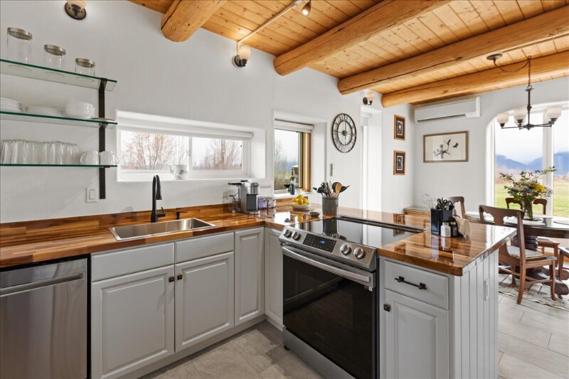 ID de propiedad: 1281603 SE INCLUYEN TODOS LOS SERVICIOS PÚBLICOS Y SERVICIOS. The Bitterroot Unit es una casa de un dormitorio completamente amueblada y elegantemente remodelada en un dúplex, con vista a las montañas Bitterroot desde todas las ventanas. Con obras de arte originales, vitrales, muebles y accesorios nuevos, esta unidad de planta baja de un solo nivel es la base perfecta para el hogar. Estacionamiento y entrada privados, lavadora/secadora, cocina completa, parrilla, amplia sala de estar y comedor con escritorio, televisor inteligente, una nueva cama King y una vista increíble desde el íntimo porche cubierto. La unidad Bitterroot está equipada con acceso a Internet de alta velocidad, calefacción radiante en el piso, chimenea a gas y calefacción/CA con minidivisión. La construcción de paja de este edificio dúplex ofrece aislamiento y aislamiento acústico definitivos; no hay paredes compartidas, aparcamiento ni entradas con el segundo apartamento, la Sapphire Unit. Convenientemente ubicado a sólo 4 kilómetros/2,5 millas del centro de Stevensville. ESTRICTAMENTE SIN FUMAR. NO SE ADMITEN MASCOTAS.