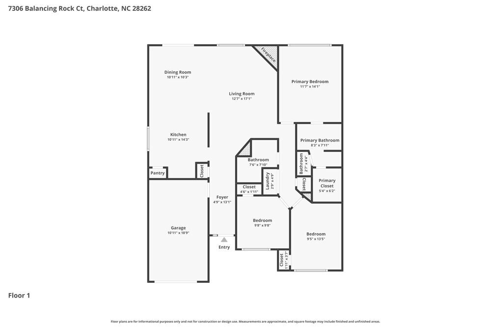 Está localizado en el barrio Mineral Springs, 7306 Balancing Rock Ct en el código postal 28262 de Charlotte, NC.