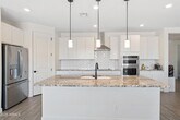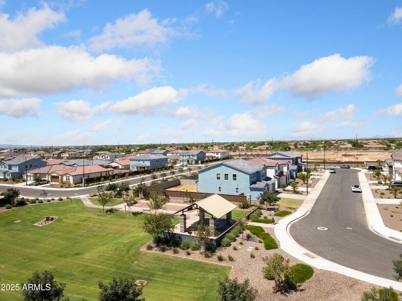 Perfect for large families or anyone needing extra space, this 3,000+ sqft two-story home offers 5 true bedrooms, a large office, and a huge loft providing plenty of room for everyone to spread out. The main level features soaring 9-ft ceilings, an open-concept great room that flows seamlessly to the covered back patio, and a chef's kitchen with quartz countertops, a walk-in pantry, and 42-in. upper cabinets for abundant storage. A private guest suite with a full bath, powder bath, and versatile den/office with doors complete the first floor. Upstairs, the expansive loft is perfect for movie nights, a playroom, or a secondary office, while the massive primary suite boasts an oversized walk-in closet and spa-like bath with a walk-in shower and extended dual-sink vanity. Three additional bedrooms, a full guest bath, and a large laundry with sink add convenience and function. Set on a premium corner lot, this home enjoys mountain views from nearly every window and is adjacent to walking trails, a gazebo, and play areas.