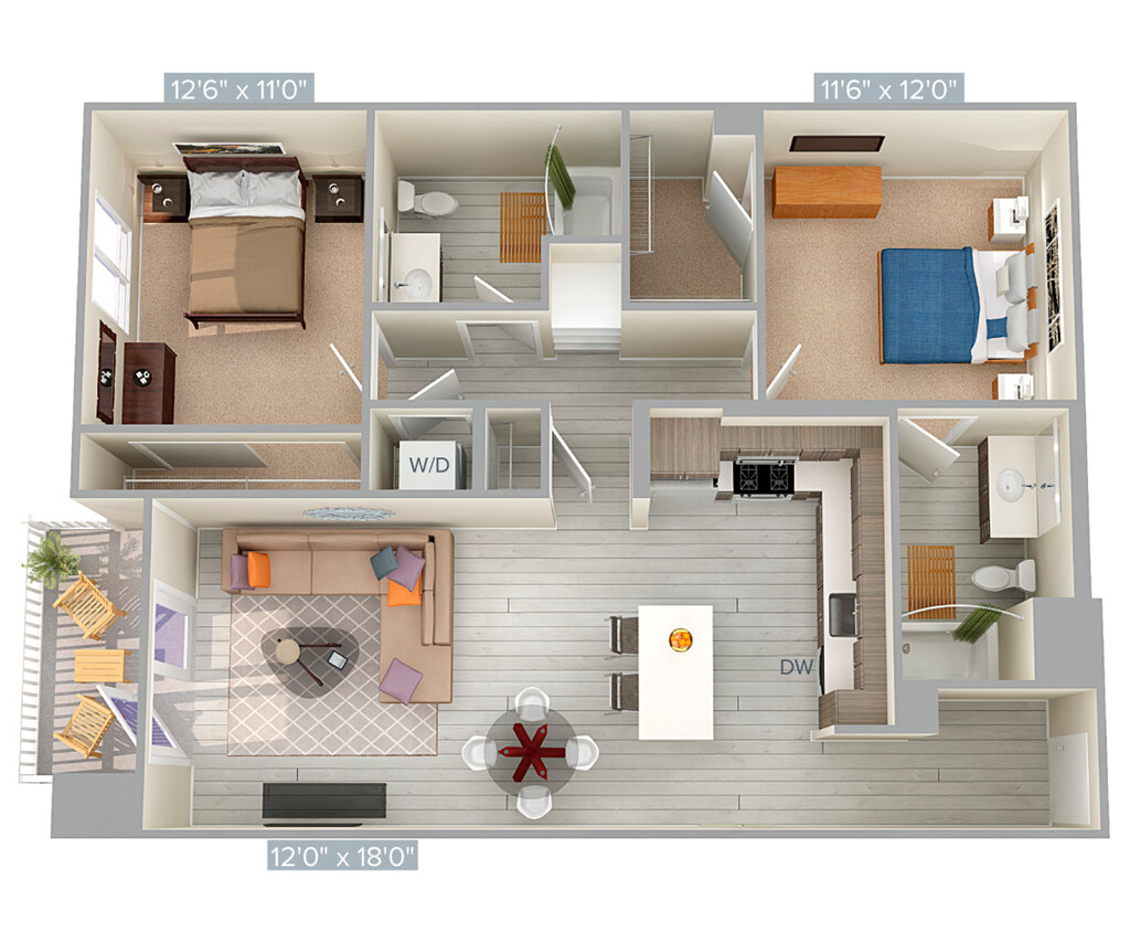 2 Beds, 2 Baths, 1107 sq ftAvailable Dec 2Largest 2 BedroomThis is the largest 2 Bedroom at this PropertyAvailability Details