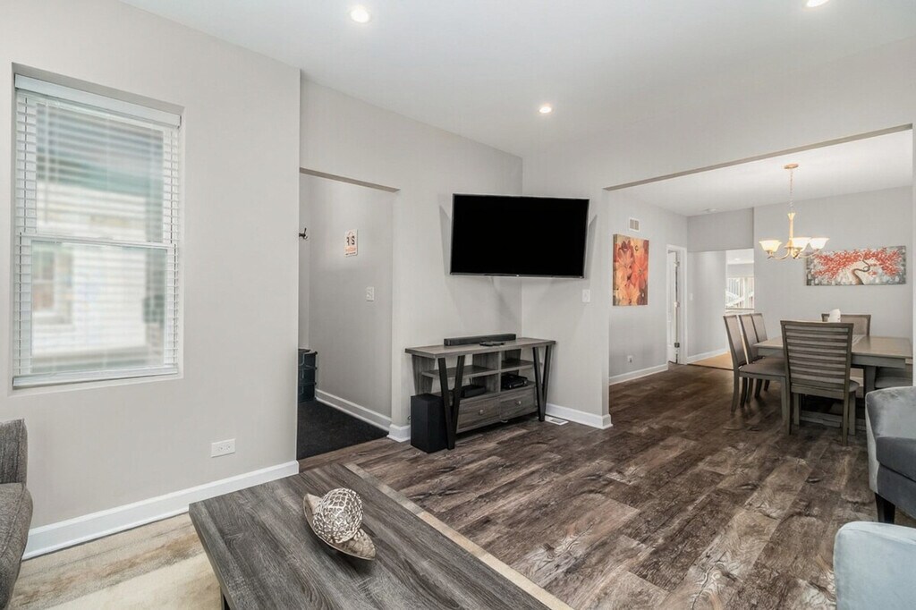 Feel at home in this renovated 2340-SF home, located just 3 miles from Midway Airport and approximately 16 minutes from downtown Chicago. This property features 5 bedrooms and 2 full bathrooms. The updated home, renovated in 2019, features a modern kitchen with updated flooring and granite countertops. The arcade room includes a race car and pilot simulator with a real chair and 3 monitors, a 2-player electronic basketball hoop, an arcade cabinet with 2,000 classic games, an air hockey/ping pong table top, and stick hockey. There is also a custom child's play area, along with cards and board games. The home is equipped with 6 LCD televisions, all with access to Hulu, Disney, and ESPN streaming services (English and Spanish), a home theater with a 100" screen, projector, and recliners, Netflix and Prime Video access, up to 300 MBPS internet speed with ethernet hard line, Wi-Fi throughout the entire home, a 55" TV in the living area, 40" TVs in all bedrooms, and a sound bar in the living room. For outdoor fun, there are 4 tennis rackets, a football, a basketball, and 50+ board games and playing cards. For the young ones, there is a pack and play sleeper, a stroller, a high chair, and a booster seat. Premium amenities include 10+ cooking spices and 3 types of cooking oils. Enjoy convenient garage and street parking. If the home has a fireplace, it is not for guest use. [SI]