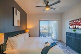 Unwind in this modern and stylish apartment in Glendale. Located in a vibrant area, you're just minutes away from top attractions like State Farm Stadium and the Westgate Entertainment District. Whether you're here for business or leisure, exploring the best of Glendale is easy from this prime location. The apartment is on the 3rd floor and requires walking upstairs as there are no elevators. Relax in this 2-bedroom, 2-bathroom unit designed with a socially and environmentally conscious living environment in mind. The open-concept design seamlessly blends the living and dining areas with the kitchen, creating a modern and sleek living experience. The living room is perfect for enjoying the company of friends and family with a sofa bed, chair, and a 4K 55" HDR Smart TV. The fully equipped kitchen includes a microwave, stove, oven, refrigerator/freezer, dishwasher, coffee maker, and all necessary utensils. The bedroom features a king-size bed, office desk, and reading lamps. Parking is available on the premises with instructions provided at check-in. Pets are allowed depending on size or if they are service animals, with an additional cleaning fee required per pet: $25 per night for 1-7 nights, $200 for 8-29 nights, and $300 for 30+ nights. There is a 2 pet maximum and only cats and dogs are allowed. If pets are brought without prior notification, a $500 fee applies. The apartment is equipped with noise monitors that measure noise levels in decibels. Tampering with these devices will incur a fee. Security cameras are installed in the hallways for your safety. Check-in instructions may be withheld until guest verification is completed, which includes providing a government-issued ID and a matching credit card. In the event of repeated violations, local law enforcement may be involved, and any associated expenses will be the responsibility of the guest. The bedroom includes an office desk and chair, making it suitable for remote work. High-speed Wi-Fi is available throughout the apartment. [SI]