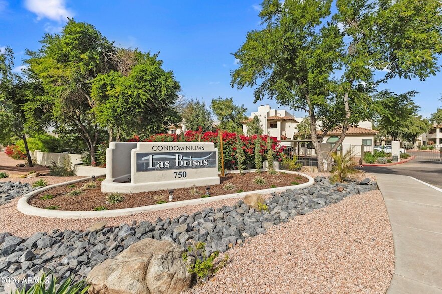Experience treehouse living in this immaculate 2BR/2BA condo, the premier floorplan in the gated Las Brisas Condominiums. Featuring a dedicated dining area and stylish decorator touches, every window offers lush, leafy views for a private retreat feel. This super-clean unit includes large walk-in closets, inside laundry, a private balcony, and covered parking. Enjoy resort-style living with 3 pools, a gym, and tennis courts. Perfectly located for an active lifestyle, you have effortless access to two major freeways and are just 12 minutes from the dining and culture of Downtown Phoenix, with the airport also just a quick, convenient drive away. A rare find!
