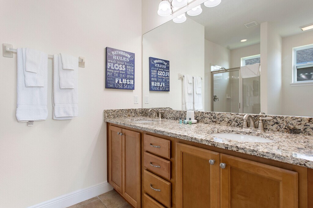 Feel at home in this well-equipped Orlando house, just 15 minutes from Disney parks and close to Kissimmee and Orlando's best restaurants, markets, and attractions. Located in a gated neighborhood, this rare find features a private pool and spa, ensuring a comfortable and worry-free getaway. The house offers a spacious floor plan with a dining room for eight, a living room with large couches, and an open kitchen that is fully equipped. Downstairs, you'll find a game room and pool area, while upstairs includes a lounge area with a large smart TV and a laundry room. All bedrooms are equipped with smart TVs. Pool and spa heating are available for a fee of $40 per day with a two-day minimum. A small charcoal grill is provided upon request, free of charge, but must be requested before arrival. For a propane gas grill or other vacation gear, please contact the host. Small pets under 40 pounds are allowed with a $150 fee per pet, except for legal service dogs with proper documentation. Parking is available for two cars in the driveway and up to two cars in the garage, with overflow parking 250 feet away. Enjoy the convenience of being just 5 minutes from MargaritaVille Sunset Walk or exploring Oldtown Kissimmee. The house is 6.5 miles from Walt Disney World®, 20 miles from Universal Studios®, 17 miles from Sea World®, 15 miles from a shopping outlet, 29 miles from Orlando Airport, and 1.5 miles from a supermarket. The house prohibits street parking and does not have a game room. Linens and towels are provided at the start of your stay, but washcloths are not included. Any damages caused by pets or extra cleaning will incur additional charges. Accommodation staff speaks Portuguese, Spanish, Turkish, and English. [SI]