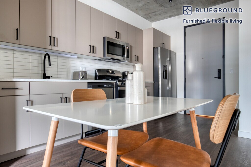Fotos Próximamente Estas fotos de muestra están pensadas para darte una idea del estilo de diseño de Blueground. La disposición y el mobiliario están sujetos a cambios. Este apartamento estará listo para la fecha indicada. ¡Sea el primero en alquilar! Ofrecemos precios personalizados por cualquier duración. Las tarifas pueden variar según las fechas exactas de mudanza. La tarifa para esta casa comienza en $2,120* / mes. Visita nuestro sitio web e ingresa tus fechas de estadía para ver los precios actualizados para tu reserva específica. *El precio cotizado es: (1) según la mudanza en el primer día en que el apartamento está disponible, (2) aplica solo si se factura por adelantado, puede ser más alto si se factura en múltiples pagos, (3) exclusivo de cualquier impuesto o servicio público. Descubra lo mejor de Chicago con este apartamento de un dormitorio con vista al río North y balcón sobre la ciudad. Será fácil simplemente presentarse y comenzar a vivir en este amplio apartamento amueblado en Blueground con su cocina totalmente equipada, una cómoda sala de estar y nuestro dedicado servicio de asistencia en el terreno. (ID #CHI1037) Diseñado pensando en usted . Diseñado cuidadosamente con acabados a medida, muebles modernos y una cocina totalmente equipada, disfrutará de esa sensación de “Estoy en casa” con este apartamento Blueground. Ya sea que esté descansando en su elegante sala de estar transmitiendo lo último en entretenimiento en el televisor inteligente o el altavoz inalámbrico premium, o descansando bien merecido en el colchón de calidad superior con sábanas de lujo, se enamorará de todo lo que este apartamento de River North tiene para ofrecer. Servicios para dormir con cama Queen de 160 cm Los servicios del edificio exclusivos de este dormitorio incluyen: - Elevador Llegada y asistencia continua ¡Todo el apartamento es suyo para disfrutar! Un miembro del equipo de Blueground te dará la bienvenida personalmente o te dará instrucciones de auto check-in. Durante su estancia, tendrá acceso a nuestro equipo de experiencia del cliente a través de la aplicación Blueground. Puedes programar limpiezas adicionales, enviar solicitudes de mantenimiento y ver las recomendaciones de nuestro vecindario con solo unos pocos toques. Compartiremos todos los detalles tras la confirmación de su estancia. Con una ubicación ideal Este apartamento amueblado está ubicado en River North, el vecindario más moderno de Chicago. Los puentes combinados con el paseo ribereño ofrecen vistas increíbles. Cerca de Michigan Avenue se encuentra la principal zona comercial de la ciudad. Uno de los activos más importantes del vecindario es el atractivo de la caminata al trabajo. Los jóvenes profesionales, que viven y trabajan en la zona, pueden llegar rápidamente a la oficina por la mañana y disfrutar de una bebida después del trabajo con la misma facilidad, ya que la zona se considera un centro de entretenimiento de primer nivel. No te pierdas un paseo por las calles Kinzie y Hubbard. Merchandise Mart, el emblemático edificio con salas de exposición, tiendas y espacio de oficinas, se encuentra a solo 5 minutos a pie. El Loop se encuentra justo al otro lado del puente y a unos 5 minutos a pie. Otras cosas a tener en cuenta Este apartamento Blueground tiene opciones de arrendamiento flexibles, lo que le permite reservarlo por un mes, un año o más. También tenga en cuenta lo siguiente: - El edificio requiere 48 horas para confirmar la reserva y validar los documentos necesarios