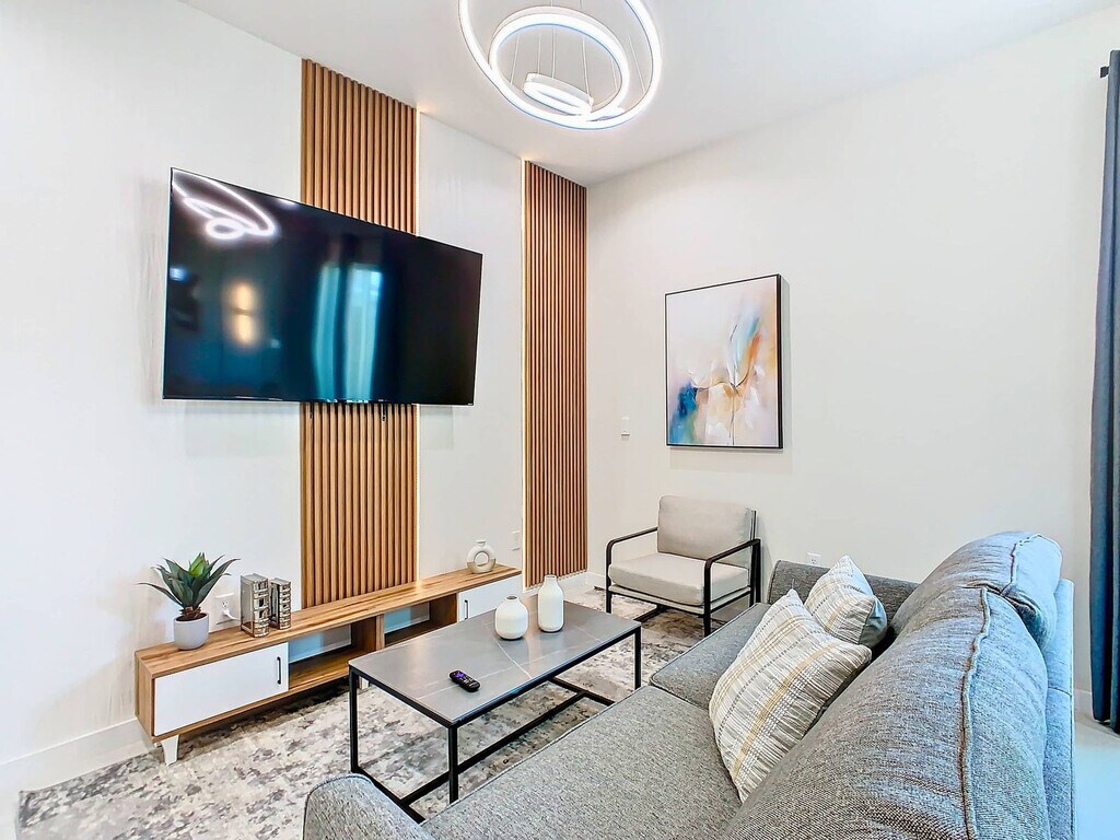 Be among the first to experience the excitement of the new Epic Universe park this May 22nd by booking your stay in this exquisite townhouse. Located just minutes away from the magic of Disney and Universal Parks, this brand new property offers unbeatable comfort and tranquility in a restricted access community. Enjoy the lovely community pool and fully equipped amenities in this 3-bedroom, 3-bathroom townhouse, designed to provide you and your family with a space that feels like your own. This townhouse features a fully equipped kitchen and a social area perfect for creating lasting memories with your loved ones. The master bedroom includes a king-size bed and a flat screen smart TV, along with a full en-suite bathroom with a tub. The second bedroom also offers a king-size bed and smart TV, while the third bedroom is a thematic Mickey room with a bunk bed (twin over full over twin) and smart TV. The living room is equipped with a digital smart TV, and the property includes essentials such as AC, bed linens, hair dryers, washer/dryer, ironing supplies, free parking, patio furniture, high-speed internet, and hangers. Additional services are available at an extra cost, including Pack and Play, high chair, early check-in, and late check-out. Please message us prior to acquiring any service to check availability. With a privileged location, this townhouse is less than 15 minutes from Disney parks and close to various attractions. Nearby destinations include Animal Kingdom (3.1 miles), Disney's Hollywood Studios (3 miles), Mystic Dunes Golf Course (1 mile), and Walmart (550 meters). The Orlando International Airport is 25 miles away, making it convenient for travelers. Guests must be at least 18 years old to book a reservation. No unregistered guests, smoking, drugs, or pets are allowed inside the home. The property is exclusively for vacation use and does not allow filming without prior authorization. A door code will be provided for contactless check-in and check-out. Enhanced cleaning procedures are in place to mitigate the spread of coronavirus, following WHO and HSE recommendations. A security deposit is required for long stays of 28 days or more, fully refundable upon check-out if no damages or deep cleaning are necessary. Guests are expected to maintain the property in good condition. [SI]
