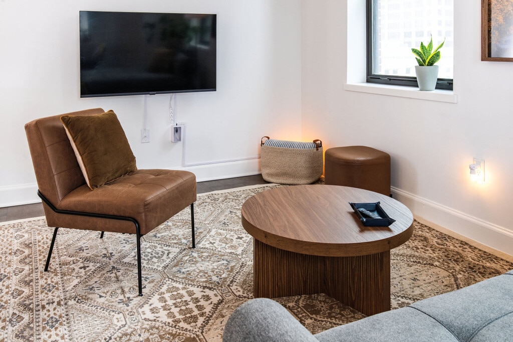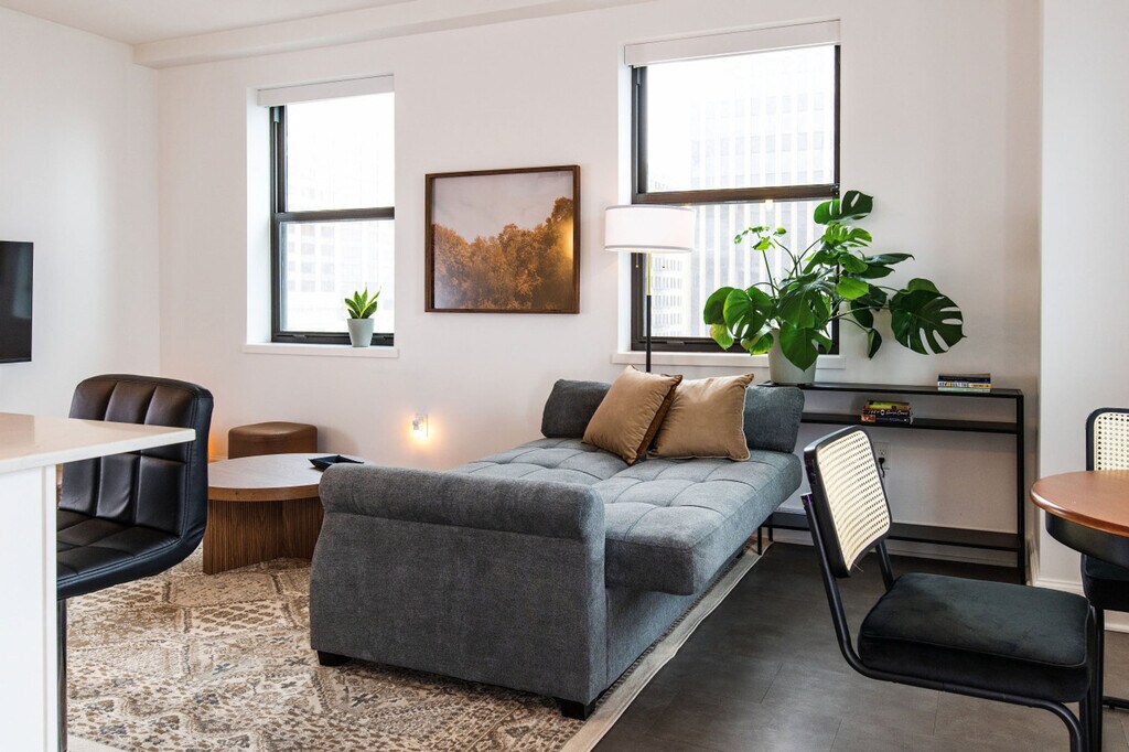 The advertised rate of $2,827/month is the lowest available price, based on a 1 month(s) stay with a move-in date of April 5, 2026. Rates vary depending on the duration of stay, season, and other parameters. For exact pricing and additional pricing components, please visit our website and enter your desired move-in and move-out dates. The rate is applicable when billed upfront; it can be higher if billed in multiple payments. Feel at home in this apartment located in the residential portion of the Milwaukee Athletic Club, a newly renovated building in Milwaukee's financial district. The historic architecture maintains charm throughout the interior and exterior spaces. This apartment comfortably sleeps four. This apartment features high-end amenities such as quartz countertops, a kitchen island, and an in-unit washer and dryer. Guests enjoy access to the MAC's world-class fitness center and indoor saltwater lap pool. The sofa bed conveniently folds down into a queen-size bed, and extra pillows and sheets are stocked in the closet, along with a full-size air mattress for a potential 5th guest. Amenities include a smart TV with Airplay, self check-in, high-speed Wi-Fi, a dedicated workspace, a dining table, a kitchen island with bar stool seating, and in-unit laundry. This listing includes one free parking space in the building's secured garage (the MAC Structure). Additional parking is available in the same garage and costs ~$30/day. Metered street parking is available throughout the neighborhood. The garage has a vertical clearance of 6'6", which is enough for most consumer vehicles but may not accommodate larger vehicles such as RVs or full-size vans. This apartment is in walking distance of the Third Ward neighborhood, Marcus/Pabst/Riverside Theaters, Milwaukee Public Market, Cathedral Square Park, the Riverwalk, Anodyne Coffee, and countless restaurants and bars. It's also a 5 minute drive or less to Fiserv Forum, Milwaukee Art Museum, Walker's Point neighborhood, and Summerfest. There is a zero-tolerance policy for parties or gatherings, and the stay may be ended without refund if house rules are violated. No smoking of any kind is allowed anywhere on the premises, including outdoor spaces, and a $150 fine will be assessed, with additional fees for remediation that may apply. Quiet time is after 10pm. Guests must cover the cost to replace unreturned access devices such as keys, key cards, fobs, or parking passes. Bookings by local guests are prohibited at this property. Includes a dedicated workspace [SI]