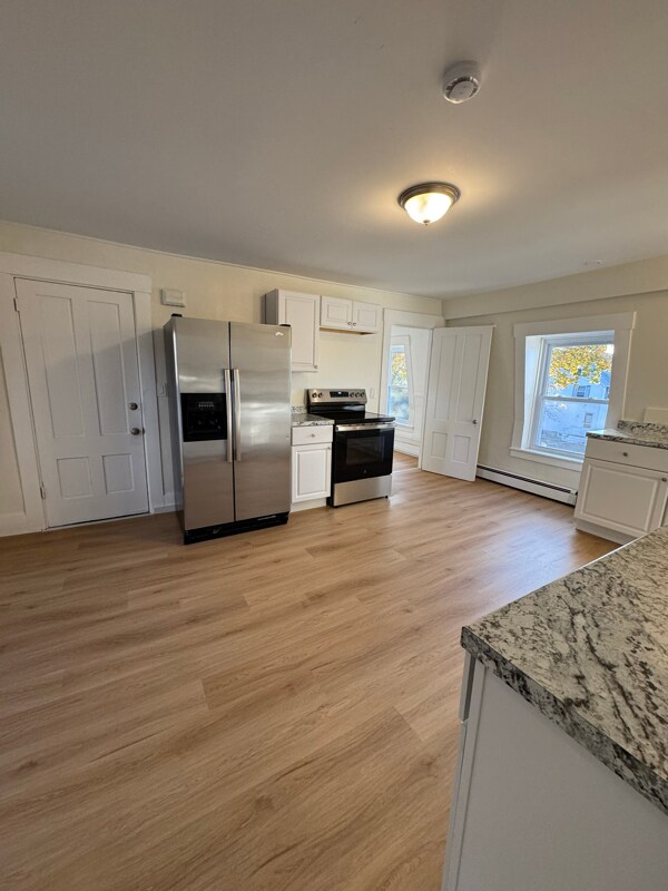 Property Id: 2205468 1-bedroom, 1 bath apartment available on the second floor of a multi-family property. This unit's renovations were just completed, which includes new flooring and paint, windows, cabinets, counters and bathroom vanity. The unit also has a small, private deck and is located not far from the Milford oval. $1600 per month, includes plowing, trash and water. Tenant is responsible for gas (heat) and electric. Heat is forced hot water baseboard heat. No AC- tenant would be responsible for window unit if desired. Private parking is behind the building with 2 spots. Laundry is not available in the building. Pets are considered for a fee. First month ($1600) and security deposit ($1600) are due upon signing a year lease.