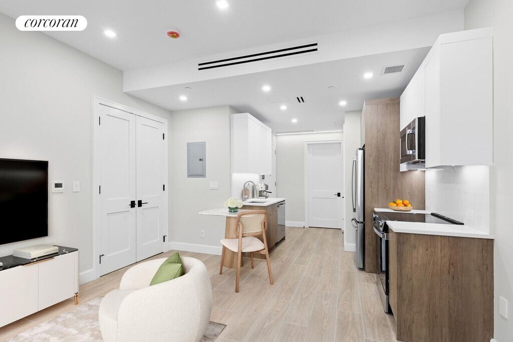 Be the first to live in one of these brand-new studio residences in the heart of Williamsburg, Brooklyn. Located at 758 / 760 Metropolitan Avenue, this boutique new development blends elevated design, modern luxury, and unbeatable convenience.Each thoughtfully designed apartment offers a spacious, open layout with top-of-the-line appliances and sophisticated finishes throughout. Enjoy year-round comfort with central air conditioning, triple-pane windows for exceptional sound insulation, and spa-like bathrooms designed for relaxation. An in-unit washer and dryer adds everyday ease, while high-end details create a clean, contemporary feel from top to bottom.The building features a pet-friendly environment, elevator access, a rooftop terrace with a gas grill and sweeping skyline views, free bike storage and private storage cages, a dedicated offsite super, and secure entry through a striking modern lobby.Live just steps from everything that makes Williamsburg one of NYC's most desirable neighborhoods. Situated on Metropolitan Avenue, you're moments from the Bedford L train and the Marcy Avenue JMZ station, offering effortless access to Manhattan and beyond. You'll be surrounded by top cafés, restaurants, bars, boutiques, and iconic local favorites. Whether you're grabbing coffee at Devoción, catching a show at Brooklyn Bowl, or browsing Artists & Fleas, there's always something to do right outside your door.Now leasing - schedule a tour today and discover refined, pet-friendly studio living in the heart of Williamsburg. Finally welcome home.Move-in dates are subject to change pending building completion.Fees: $20 application fee, first month's rent, and security deposit.