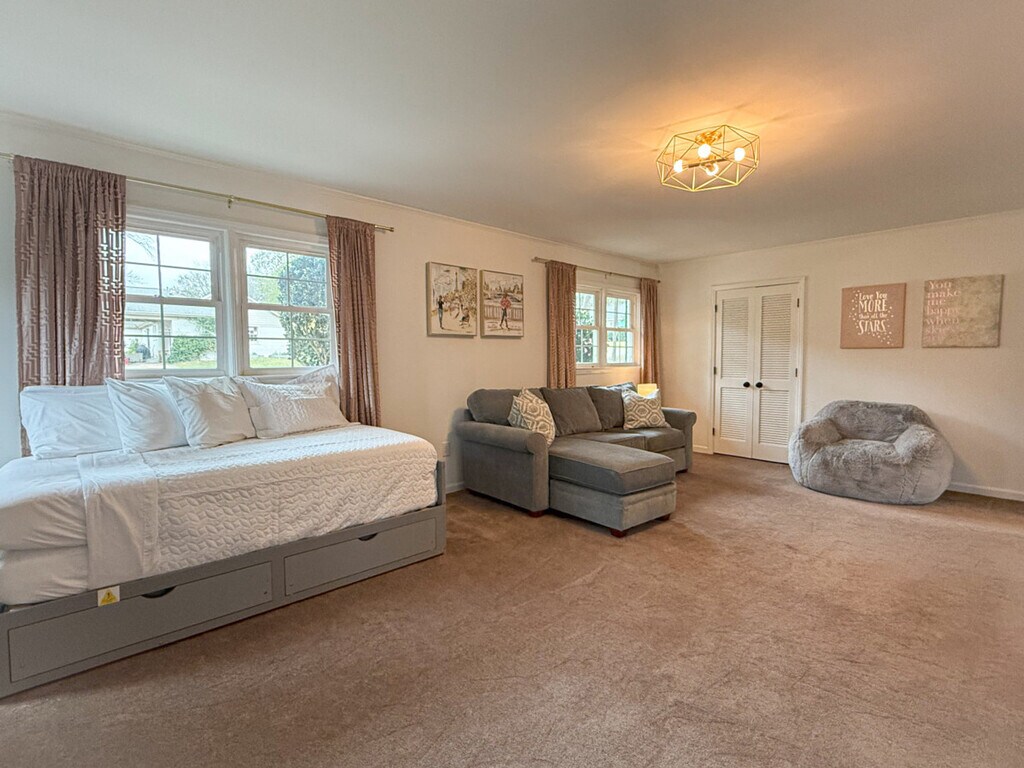 Feel at home in this cozy and private apartment located in a quiet Southpark neighborhood, just 15 minutes from Carowinds Amusement and Waterpark and Uptown Charlotte. Perfect for business travelers and families, this apartment offers easy access to the airport and all that Charlotte has to offer. This apartment features four spacious bedrooms and three full bathrooms, providing ample space for relaxation. The fully equipped kitchen includes stainless steel appliances, cooking basics, spices, a Keurig coffee maker, and seating for six. The living room is perfect for movie nights with a sectional sofa and a big screen Smart TV. Enjoy the fenced-in backyard with a charbroil grill, an expansive patio with seating and a dining table, and a children's playset. Free parking is available with a carport and driveway space for six vehicles and overnight street parking. Pets are welcome for an additional fee of $300 per pet per stay. Travelers love this property for its prime location, close to many Charlotte attractions, restaurants, and shopping. The neighborhood is safe and family-friendly, making it an ideal choice for visitors. There is absolutely no smoking or vaping of any kind in the house or garage, with a $500 fine for violations. Smoking is allowed outside in the backyard only. Quiet hours are from 9 PM to 8 AM, and guests must not be disruptive to neighbors. No events or drop-by guests are allowed without prior permission, and a maximum of 10 guests is permitted unless pre-approved. For security, the property has a Ring doorbell camera monitoring the front and additional exterior cameras monitoring the backyard and driveway, all of which are on during reservations. Easy check-in and check-out are facilitated with a personal door code. [SI]