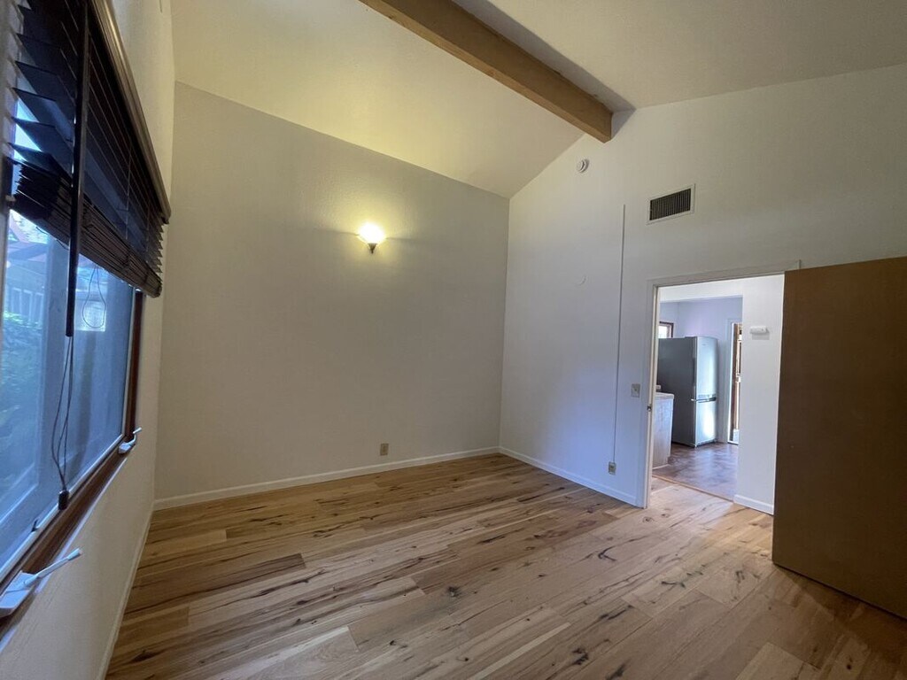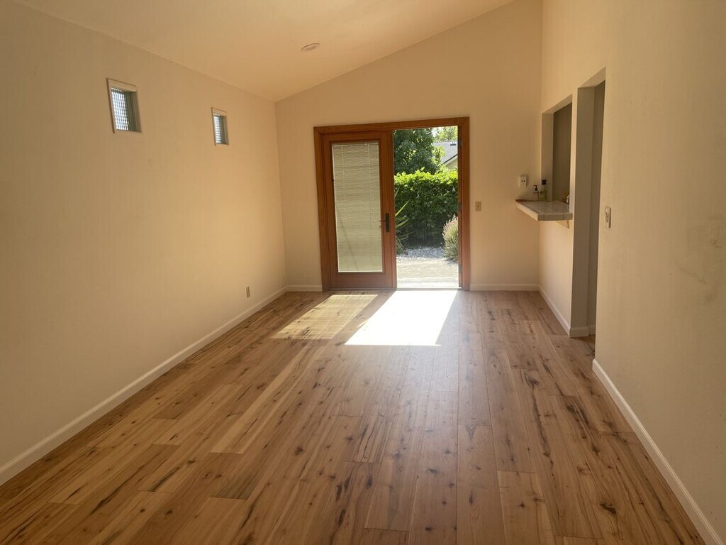 Charming rear, detached home on a two on a lot property in the ever popular Madison Heights neighborhood of the city. Set back from the street, the bungalow offers its own spacious private backyard. Private alley access to 763 South Los Robles which is a charming cozy one bedroom ( Plus an office on the second floor ) and one bathroom back house. One car attached garage has direct access to the home. Washer & dryer inside the garage. High ceilings and an open floor plan make this back unit a very light and airy home. Central air & heat, updated kitchen with new stove. Fresh interior paint and brand new hardwood floor just installed in living area and bedroom. Open the door on the second floor leads to a large open roof space. Landlord will pay for the water and gardener.