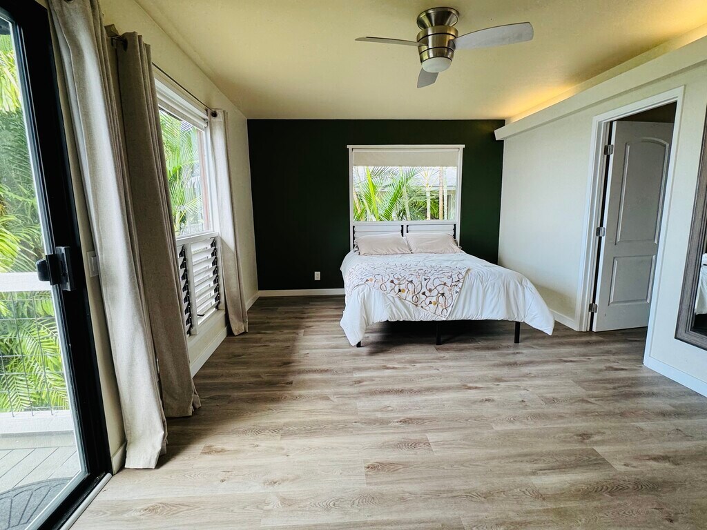 Property Id: 2418004 Unique downstairs configuration with two private bedrooms. The master bedroom comes with large closet and en-suite bathroom. The guest room is spacious with ample storage space. The home has a full kitchen and pantry, and cozy living room and large lanai furnished with outdoor table and chairs to enjoy the sunset and ocean views. Enjoy the home’s classic Hawaiian jalousie windows, welcoming in cool mountain breezes and fresh island air. In the evenings, the gentle chorus of coqui frogs creates a natural rhythm that many guests find deeply relaxing for sleep. Features: Private entrance 2 large rooms 2 full bathrooms Lanai and outdoor furniture with expansive views Quiet residential setting Included: Fully Furnished Electricity WIFI Parking Pest Control Laundry access Driveway parking 1 vehicle
