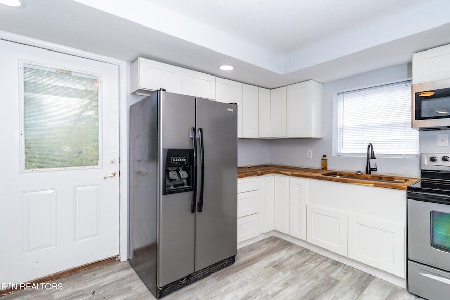 So much potential with this fixer upper! 3100+ sq ft to transform into a beautiful home with 100 ft of frontage on a wide section of Poplar Creek. Spacious lot, just under an acre, with the home perched high looking down on the water. The other side of the lot offers a red barn and fenced meadow with a large concrete pad for an RV sized vehicle. Will need a lot of work but could be amazing for a home owner or investor. Located 10 min to heart of Oak Ridge and a 15 min ride to Wind Rock Off roading park! Priced to sell ''as is'' cash only sale. Tax records used for listing information. Buyer to verify all information.