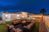 Feel at home in this spacious 6-bedroom house in Glendale, AZ, offering everything you need for an unforgettable vacation. With 3.5 bathrooms and ample space for up to 16 guests, this home is perfect for large groups or families. Enjoy the convenience of being a short drive from State Farm Stadium, West Gate Entertainment District, and various shopping and dining options. This home blends modern comfort with resort-style amenities, including a heated private pool, a fun-filled game room with a pool table and arcade games, and a dedicated workspace for those who need to stay connected. The fully stocked kitchen features high-end stainless appliances, a large refrigerator, and a Keurig coffee maker, making it easy to prepare meals for your group. Relax in the living room with a smart TV and plush sofas, or enjoy the spectacular backyard with a fire pit, BBQ grill, and ample outdoor seating. Dogs are welcome for a fee of $125 per stay, and parking is available in the driveway for up to 3 cars. The heated pool is available for $100 per night and can be heated to about 20-25 degrees above the ambient temperature, with a 3-day notice required before arrival. The pool must be heated for the entirety of your stay. Located near notable attractions such as State Farm Stadium, Westgate Entertainment District, and Desert Diamond Arena, this home is ideally situated for exploring Glendale. Enjoy nearby shopping at Tanger Outlets Phoenix or take a leisurely stroll through the Glendale Historic District. Dining options abound, with local favorites like La Piazza al Forno and Haus Murphy's offering a taste of the area's diverse cuisine. Check-in is at 4pm and check-out is at 10am. No parties are allowed, and violations may result in immediate termination of the stay. An exterior camera is installed solely to monitor the cleaning team for quality and security purposes. Guests must be 25 years or older to book this property. Includes a dedicated workspace for those who need to stay connected during their stay. [SI]
