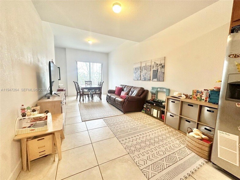Rarely find Mediterranean-style tri-level townhouse featuring 2 bedrooms and 2 bathrooms. This bright and spacious home offers high ceilings, impact-resistant windows, and three private balconies. The first floor features a private garden, an ideal sitting area or home office, a garage, and an in-unit washer and dryer. The second floor offers an open living area with tile flooring, a guest bathroom, and a gourmet kitchen equipped with stainless steel appliances. The third floor includes two bedrooms with vinyl flooring and a full bathroom. Additional highlights include walk-in closets and excellent natural light throughout. The property includes one garage space plus one assigned parking spot. Ideally located within walking distance to the Metrorail station, restaurants, shops, places of worship, and more. Easy to show.