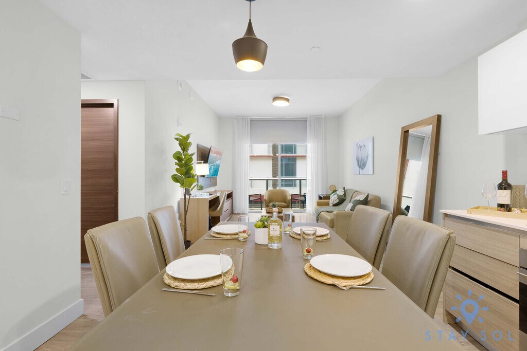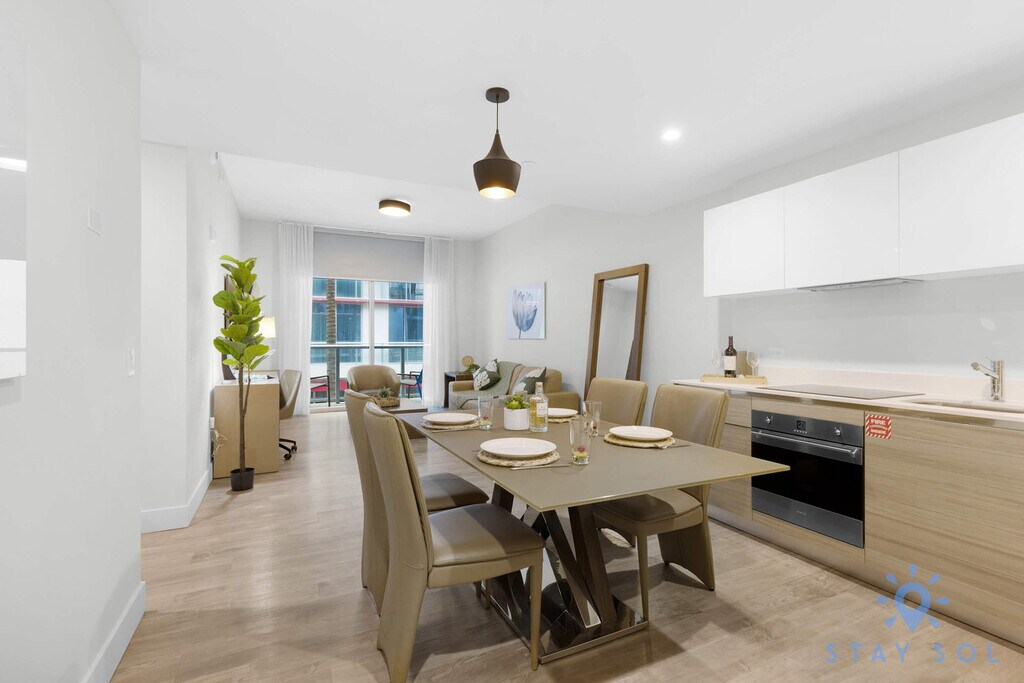 Feel at home in this brand new apartment steps from the legendary Hollywood Beach Broadwalk. This apartment accommodates up to 4 guests. This apartment features a well-designed bedroom that mixes natural wood and stone with organic textures, along with state-of-the-art technology. The fully equipped gourmet kitchen offers a stainless steel refrigerator, glass stove, integrated oven, silent dishwasher, integrated microwave, stove, dishes, coffee maker, and toaster. The spacious bedroom includes a hairdryer, an electronic safe, an iron and ironing board, and TVs. Enjoy access to the rooftop infinity pool and lounge area with amazing ocean and Intracoastal views. The apartment is fully furnished with ceramic floors, electronic door locks, European-style cabinetry, and modern-style designer fixtures and faucets. Pack and Play cribs are available upon request. This is a pet-friendly property, and one pet per unit is welcome for free, with fees potentially applying for additional pets. The apartment has a 25 lbs restriction for pets (doesn’t apply to ESA). Parking is available at the condo for $42 a day, or you can issue a public parking pass for the whole month for $110 plus taxes. With the public parking pass, you can park on any street or city parking lot. Located along North Ocean Drive in the lively community of Hollywood Beach, this apartment puts you at the heart of the action. Within walking distance of the famous Hollywood Beach Broadwalk and the beach, you can enjoy exciting activities such as jet skiing, fishing, sailing, biking, and golf. South Beach and Miami are a short drive away. The Broadwalk, paved with bricks, has bars, restaurants, boutiques, and shops. Check-in is any time after 4 pm, and check-out is any time before 11 am. Swimming is at your own risk, as there is no lifeguard on duty. Children must be supervised by a responsible adult at all times. No diving or running is permitted. Please keep all doors closed and the air conditioning on at all times to help prevent condensation and property damage. The public beach and Broadwalk within the City of Hollywood Beach does not allow pets (service animals are still welcome!). [SI]