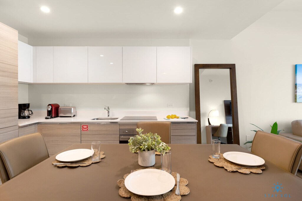 Feel at home in this brand new apartment steps from the legendary Hollywood Beach Broadwalk. This apartment accommodates up to 4 guests and features a master bedroom and a living room with a balcony. This apartment offers all the comfort you need, with a well-designed bedroom mixing natural wood and stone with organic textures, along with state-of-the-art technology. The fully equipped gourmet kitchen offers a stainless steel refrigerator/freezer, a glass stove, an integrated oven, a silent dishwasher, an integrated microwave, a stove, dishes, a coffee maker, and a toaster. The spacious bedroom includes a hairdryer, an electronic safe, an iron/ironing board, and a TV. The building features a rooftop infinity pool, hot tub, gym, and sun deck. Parking is available at the condo for $42 a day, or you can issue a public parking pass for the whole month for $110 plus taxes, which allows you to park on any street or city parking lot. A pack-n-play crib is available upon request. One pet per unit is welcome for free, but fees may apply for additional pets, and the condo has a 25 lbs restriction (doesn’t apply to ESA). Located along North Ocean Drive in the lively community of Hollywood Beach, this apartment puts you at the heart of the action. Within walking distance of the famous Hollywood Beach Broadwalk and the beach, you can enjoy activities such as jet skiing, fishing, sailing, biking, and golf. South Beach and Miami are a short drive away. The Broadwalk has bars, restaurants, boutiques, and shops. Local experiences await at The Le Tub Saloon, GG's Waterfront Grill, El Tayta, and Taverna Opa. Keep all doors closed and the air conditioning on at all times to help prevent condensation and property damage. Swimming is at your own risk, with no lifeguard on duty, and children must be supervised by a responsible adult at all times. No diving or running is allowed. A registration fee of $50 applies. The public beach and Broadwalk within the City of Hollywood Beach does not allow pets (service animals are still welcome!). [SI]