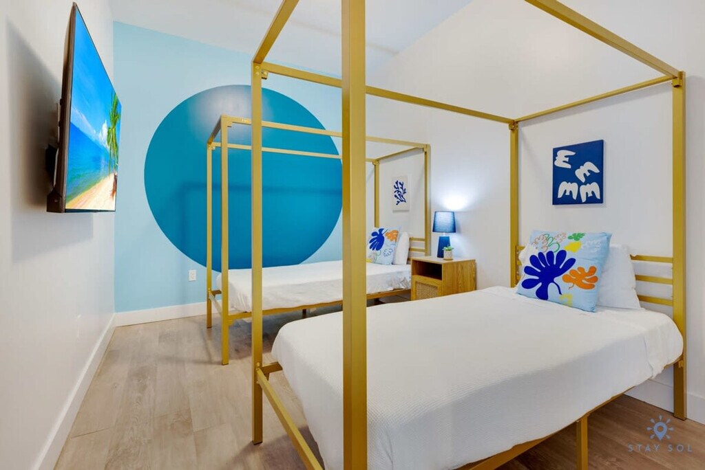 Feel at home in this brand-new apartment steps from the Hollywood Boardwalk, offering views of the beach and proximity to bars, live music, and restaurants. This apartment accommodates up to 6 guests. This apartment features a fully equipped gourmet kitchen with a stainless steel refrigerator/freezer, glass stove, integrated oven, silent dishwasher, integrated microwave, stove, dishes, coffee maker, and toaster. The spacious bedroom includes a hairdryer, electronic safe, iron/ironing board, and TVs. Enjoy ceramic floors, electronic door locks, European-style cabinetry, and modern-style designer fixtures and faucets. The condo resort includes a rooftop infinity pool, hot tub, gym, and sun deck. Parking is available at the condo for $42 per day, or a public parking pass can be issued for $110 per month plus taxes, allowing parking on any street or city parking lot. A pack-n-play crib is available upon request. One pet per unit is welcome for free; fees may apply for additional pets, with a 25 lbs restriction (doesn’t apply to ESA). Located along North Ocean Drive in Hollywood Beach, this apartment is within walking distance of the Hollywood Beach Boardwalk. Enjoy activities such as jet skiing, fishing, sailing, biking, and golf. South Beach and Miami are a short drive away. The Boardwalk features bars, restaurants, boutiques, and shops. Swimming is at your own risk; there is no lifeguard on duty. Children must be supervised by an adult at all times. Please keep all doors closed and the air conditioning on at all times to prevent condensation and property damage. Check-in is any time after 4PM, and check-out is any time before 11AM. An early check-in or late check-out may be available upon request. [SI]