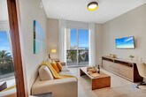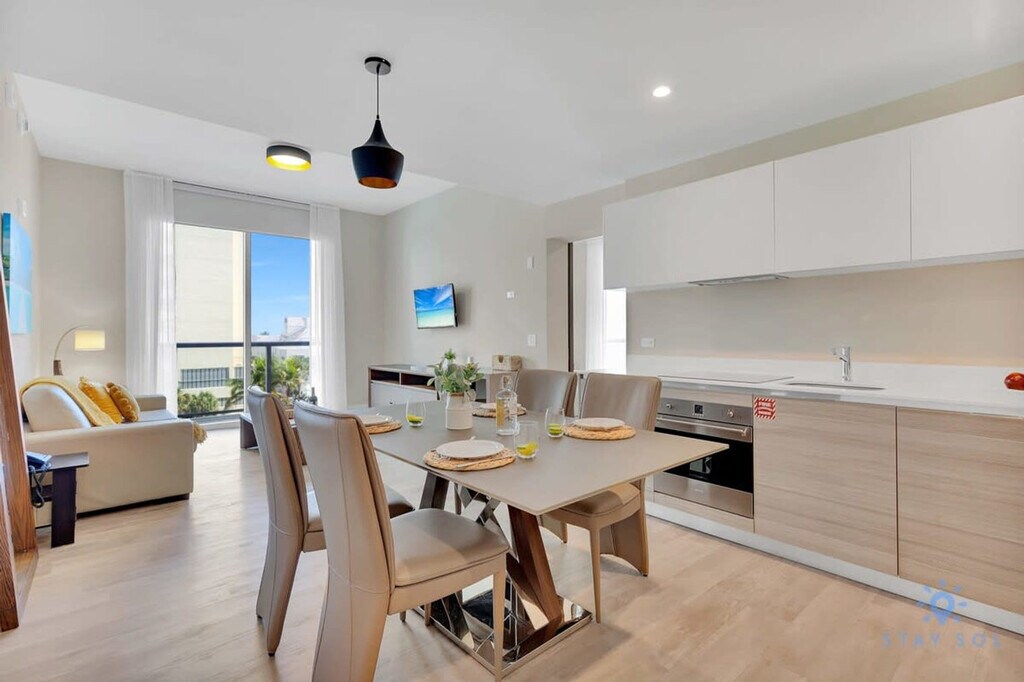 Steps from the Hollywood Boardwalk, feel at home in this modern condo resort overlooking a beautiful beach. This apartment features a master bedroom and a living room with a wrap-around balcony offering ocean views. This brand-new apartment offers all the comforts you need, including a fully equipped gourmet kitchen with a stainless steel refrigerator/freezer, glass stove, integrated oven, silent dishwasher, integrated microwave, stove, dishes, coffee maker, and toaster. The spacious bedroom includes a hairdryer, electronic safe, iron/ironing board, and TVs. Enjoy luxurious features such as ceramic floors, electronic door locks, European-style cabinetry, and modern-style designer fixtures and faucets. Enjoy access to the rooftop infinity pool, hot tub, gym, and sun deck. A pack-n-play crib is available upon request. Parking is not included; you can park at the condo for $42 a day or issue a public parking pass for $110 plus taxes, which allows you to park on any street or city parking lot. Located along North Ocean Drive in Hollywood Beach, this apartment puts you at the heart of the action. You'll be within walking distance of the famous Hollywood Beach Broadwalk, restaurants, and a playground. Enjoy exciting activities such as jet skiing, fishing, sailing, biking, and golf. South Beach and Miami are a short drive away. The Broadwalk, paved with bricks, features bars, restaurants, boutiques, and shops. Swimming is at your own risk; there is no lifeguard on duty. Children must be supervised by an adult at all times. Please keep all doors closed and the air conditioning on at all times to prevent condensation and property damage. [SI]