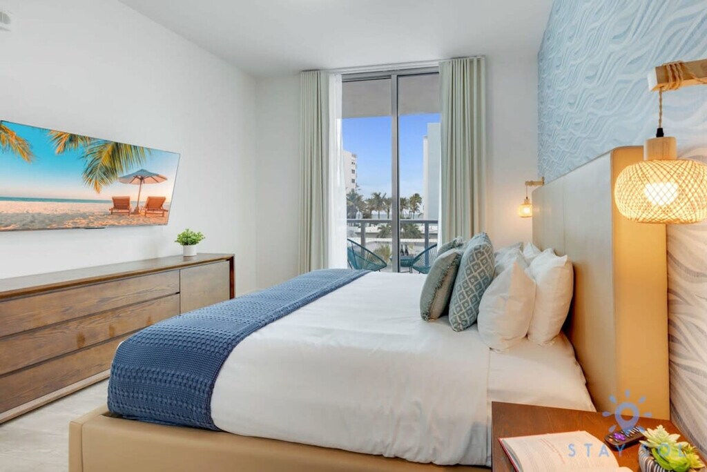The advertised rate of $4,908/month is the lowest available price, based on a 1 month(s) stay with a move-in date of September 2, 2026. Rates vary depending on the duration of stay, season, and other parameters. For exact pricing and additional pricing components, please visit our website and enter your desired move-in and move-out dates. The rate is applicable when billed upfront; it can be higher if billed in multiple payments. Feel at home in this modern condo resort, steps from the legendary Hollywood Beach Broadwalk. Overlooking a beautiful beach surrounded by bars, live music events, and wonderful restaurants, this apartment offers a perfect staycation for family and friends. This apartment accommodates up to 6 guests. This brand-new apartment offers all the comfort you need. The well-designed bedrooms mix natural wood and stone with organic textures, along with state-of-the-art technology. The fully equipped gourmet kitchen offers a stainless steel refrigerator, a microwave, dishes, a coffee maker, and a toaster. The spacious bedroom includes a hairdryer and an iron/ironing board. Enjoy the rooftop infinity pool and lounge area with amazing ocean and Intracoastal views. The apartment is fully furnished with ceramic floors, electronic door locks, European-style cabinetry, and modern-style designer fixtures and faucets. A pack-n-play crib is available upon request. One pet per unit is welcome for free, but fees may apply for additional pets. The condo has a 25 lbs restriction (doesn’t apply to esa). Parking is available at the condo for $42 a day, or you can issue a public parking pass for the whole month for $110 plus taxes. With the public parking pass, you can park on any street or city parking lot (300 Connecticut St). Located along North Ocean Drive in the lively community of Hollywood Beach, this apartment puts you at the heart of the action. Within walking distance of the famous Hollywood Beach Broadwalk and the beach, you can enjoy exciting activities such as jet skiing, fishing, sailing, biking, and golf. South Beach and Miami are a short drive away. The Broadwalk has two and a half miles of bars, restaurants, boutiques, and shops. For a truly local experience, you can't go wrong with The Le Tub Saloon, GG's Waterfront Grill, El Tayta and Taverna Opa. Swimming is at your own risk, as there is no lifeguard on duty. Children must be supervised by a responsible adult at all times. Please keep all doors closed and the air conditioning on at all times to help prevent condensation and property damage. Check-in is any time after 4 pm, and check-out is any time before 11 am. The public beach and Broadwalk within the City of Hollywood Beach does not allow pets (service animals are still welcome!). [SI]