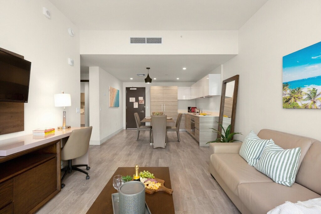 The advertised rate of $2,751/month is the lowest available price, based on a 1 month(s) stay with a move-in date of September 7, 2026. Rates vary depending on the duration of stay, season, and other parameters. For exact pricing and additional pricing components, please visit our website and enter your desired move-in and move-out dates. The rate is applicable when billed upfront; it can be higher if billed in multiple payments. Feel at home in this brand new apartment steps from the legendary Hollywood Beach Broadwalk. This apartment accommodates 4 guests and features a master bedroom with a king-size bed, a living room with a comfortable full pullout sofa bed, and a balcony. This apartment offers all the comfort you need, with a well-designed bedroom that mixes natural wood and stone with organic textures, along with state-of-the-art technology. The fully equipped gourmet kitchen offers a stainless steel refrigerator/freezer, a glass stove, an integrated oven, a silent dishwasher, an integrated microwave, a stove, dishes, a coffee maker, and a toaster. The spacious bedroom includes a hairdryer, an electronic safe, an iron and ironing board, and TVs. Enjoy ceramic floors, electronic door locks, European-style cabinetry, and modern-style designer fixtures and faucets. Resort fee will be charged at the check-in time at the property and it is not included. Parking is not included; you can park at the condo for $42 a day or issue a public parking pass for $110 a month plus taxes. A pack-n-play crib is available upon request. One pet per unit is welcome for free; fees may apply for additional pets, and the condo has a 25 lbs restriction (doesn’t apply to esa). Located along North Ocean Drive in the lively community of Hollywood Beach, this apartment puts you at the heart of the action. Within walking distance of the famous Hollywood Beach Broadwalk and the beach, you can enjoy exciting activities such as jet skiing, fishing, sailing, biking, and golf. South Beach and Miami are a short drive away. The Broadwalk has bars, restaurants, boutiques, and shops. Local experiences await at The Le Tub Saloon, GG's Waterfront Grill, El Tayta, and Taverna Opa. Fort Lauderdale International Airport (FLL) is 7.72 miles away, and Miami International Airport (MIA) is 23.8 miles away. Check-in is any time after 4 pm, and check-out is any time before 11 am. Early check-in or late check-out may be available. You may experience increased noise levels due to ongoing nearby construction. Swimming is at your own risk – no lifeguard on duty. Children must be supervised by a responsible adult at all times. No diving or running. The property management is not liable for any accidents, injuries, or losses that may occur while using the pool or surrounding areas. Please keep all doors closed and the air conditioning on at all times to help prevent condensation and property damage. [SI]