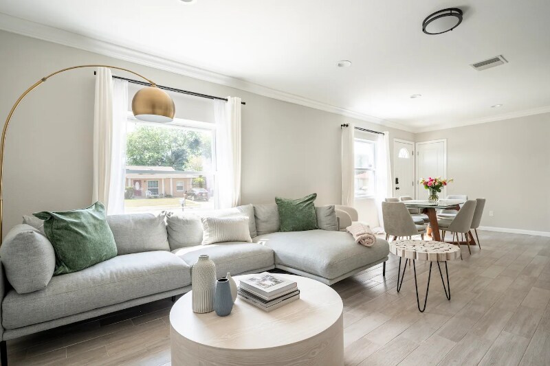 Property Id: 2300454 Looking for Female Roommate: Fully Furnished Private Bedroom with En-Suite private bathroom (UTILITIES & WIFI INCLUDED $1050/MO) in a Large 2,500 Sq.Ft+ home. Upstairs private room comes with a QUEEN-sized bed, two nightstands and a dresser. The room has two spacious closets. You will have your private en-suite bathroom with a standing shower. You will share the household with 3-4 other roommates and have full access to the furnished kitchen, living room, dining area, laundry room, lanai, and backyard. Perfect room for students or working professionals! All Utilities/WIFI/Parking Included. $1050 flat monthly rent. Fully furnished household and common areas Routine cleaning for common areas provided Free WIFI Desk and Chair Work Station Queen Sized Bed Included Mini-Fridge Bedrooms have ceiling fans with adjustable dim lighting Full Kitchen (Access to refrigerator and appliances, microwave, Keurig machine, dish-ware, silverware, cookware, electric kettle, toaster oven, cooking utensils) 40“ Roku Smart TV Free Parking in front of house Free Access to Washer & Dryer House is conveniently located in Orlando, where you will be within 10-30mins driving distance of all major attractions (Disney, Amway Center), Downtown, Baldwin Park, MCO airport, College Park, Winter Park, UCF, restaurants, shops, universities and hospitals. You will be sharing the household and common areas with 3-4 other roommates who are all working professionals or students. Everyone is respectful and clean. NO COUPLES. NO PETS. NO SMOKING. Minimum 4-6 months stay. Long term stays preferred. Females preferred. Require a security deposit of $300 and 1 rental reference