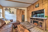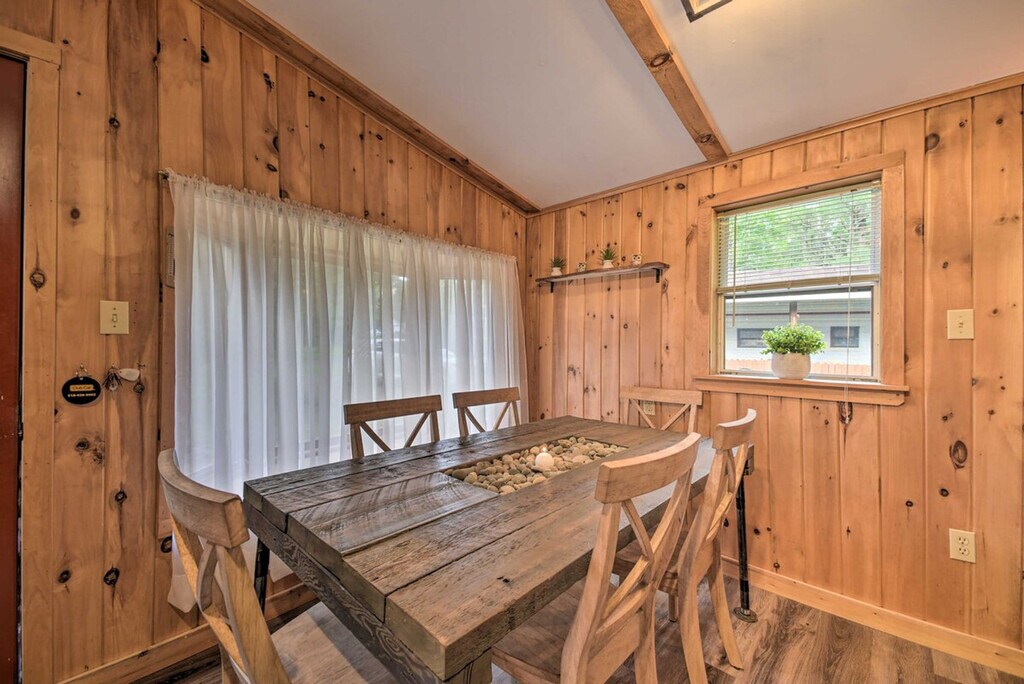 The advertised rate of $5,746/month is the lowest available price, based on a 1 month(s) stay with a move-in date of June 2, 2026. Rates vary depending on the duration of stay, season, and other parameters. For exact pricing and additional pricing components, please visit our website and enter your desired move-in and move-out dates. The rate is applicable when billed upfront; it can be higher if billed in multiple payments. Feel at home in this modern, updated 3-bedroom cabin, designed for the ultimate glamping getaway. This single-story cabin requires four steps to enter. This cabin features an outdoor kitchen, wet bar, deck, and two fire pits. The main features include a gas fire pit, an outdoor dining set, an outdoor shower, a wood-burning fire pit with Adirondack chairs, a gas grill, a Smart TV with cable, a video game console, a 6-seat dining table, an electric fireplace, a bathtub, and life vests. The kitchen is equipped with a dishwasher, refrigerator, stove/oven, microwave, spices, dishware/flatware, a knife set, a toaster, a drip coffee maker, a Crockpot, a blender, a high chair, and an ice maker. You'll also find trash bags, paper towels, a washer/dryer, central heating, towels, linens, complimentary toiletries, laundry detergent, hair dryers, hangers, board games, books, beach towels, and pool toys. Guests have access to the shared dock on Woodstock Lake and the community pool, as well as kayaks and canoes. Community amenities include picnic areas, a heated pool, recreation facilities, a playground, a basketball court, and horseshoes. Parking is available in the driveway for two vehicles and street parking for one vehicle. Located steps from Woodstock Lake, the surrounding area boasts plenty of trails, parks, and preserves to explore, while downtown Albany awaits just 24 miles away. Smoking, pets, events, parties, and large gatherings are not allowed. The property does not have air conditioning. This cabin is laptop-friendly and offers free Wi-Fi via a mobile hotspot. Guests will have access to the entire property via lockbox. [SI]