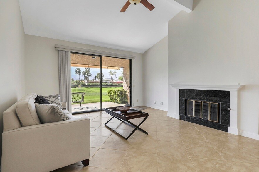 Remodeled 2 bedroom, 2 bathroom condo with stunning Southern Mountain Views and located on the 15th fairway in gated Montego Circle... Each bedroom has a patio to enjoy and the condo has walls of glass to let in lots of light, as well as the great views. Gourmet kitchen is open to the GREAT ROOM and boasts slab granite counters, gas cooktop and stainless steel appliances. A spacious two-car garage with room for a golf cart is attached. New carpet and recently painted. There is a convenient electric awning installed on the rear patio , which is on the golf course. Montego Circle has one tennis court and six pools/spas to enjoy. Offered unfurnished, but could furnish if necessary. Rent includes cable TV & internet, water and trash, as well as the community pools/spas and gardening.