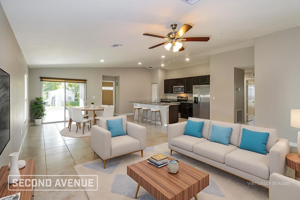 Welcome home to this 4-bedroom, 2-bathroom home well-situated in beautiful SW Palm Bay! Enter into an open concept living and dining space with soaring vaulted ceilings. The chef-inspired kitchen boasts granite countertops, stainless steel appliances, a large center island, and a convenient pantry. The primary suite features an oversized closet and en-suite bathroom, while the generously sized secondary bedrooms are bright with great closet space. Tile floors throughout provide style and easy maintenance. Don't miss this opportunity - schedule a tour today and discover your perfect Florida paradise! LOCATION: Easy access to I95, offering the convenience of being in close proximity to shopping and dining at Bayside, Bill Madden Park, beautiful beaches, and abundant outdoor activities. SCHOOL DISTRICT: Brevard Public Schools OUTDOOR SPACE: Rear covered porch, ideal for enjoying the Florida sunshine. The two-car garage provides ample space for parking and storage Second Avenue is proud to offer the Hometown Hero Leasing Discount Program to honor and support local heroes, including police officers, firefighters, emergency medical personnel, educators, and government employees. Eligible participants who are fully approved for a lease will enjoy a reduced security deposit on their Second Avenue home. This offer cannot be combined with other promotions or discounts unless otherwise specified. By choosing a professionally managed rental home by Second Avenue, you'll enjoy personalized services such as our all-in-one resident portal, dedicated call center, and professional maintenance program. All Second Avenue homes are pet-friendly (pet fees and breed restrictions apply) and we offer convenient self-guided showings 7 days a week. We also proudly offer military discounts for active-duty personnel. Visit to apply online, review qualification criteria, and search for additional homes; or contact our leasing team for more information. Additional fees may include, yet not limited to septic/sewer, or renters insurance. Approved applicants must pay a hold fee and begin the lease agreement within 7 to 12 days of approval. Don't delay, as our homes lease quickly! Please be aware of scams. Second Avenue does not advertise on Craigslist, Facebook Marketplace, or any other classified advertising websites. We will never ask you to wire funds. Applications and lease signings are completed only through . All photos shown are for illustrative purposes. Certain finishes, flooring, and room orientation may vary.