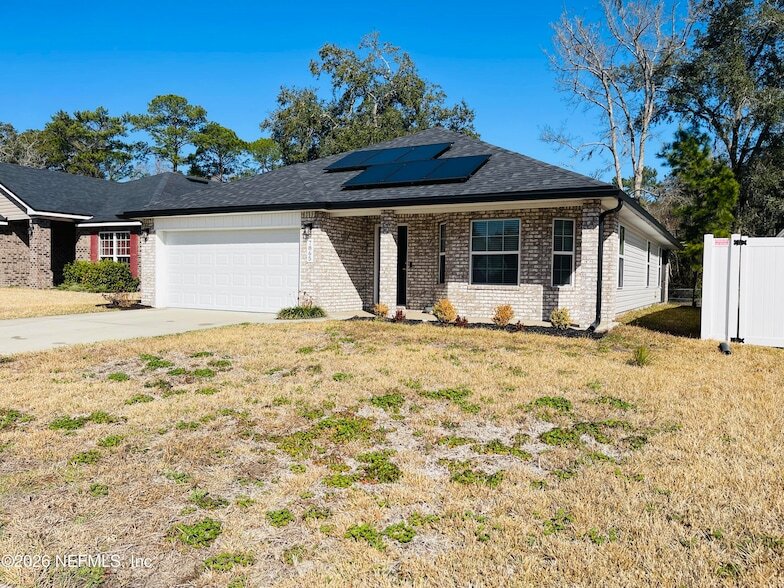 Welcome to this 3BED/2BATH Solar BEAUTY backed up to water in NW Jax in Natural Park Estates! This property boasts an amazing brick home w/ water softener, wifi connected sprinklers, Google Nest Thermostat operated by phone, installed cameras & has highly sought-after floorplan. Upon entry you are met by an exquisite formal dining area that wraps around leading you into the oversized kitchen! This open-floorplan is topped w/ an island overlooking the family room with vaulted ceilings. Large primary bedroom w/ large walk-in closet. The bathroom features NEW Lighting, a Garden tub, Double Vanity & separate Shower! Outside awaits w/ a screened-in lanai for outdoor entertaining and even topped with a covered patio out front! With NEW nearby local conveniences and minutes from Downtown!