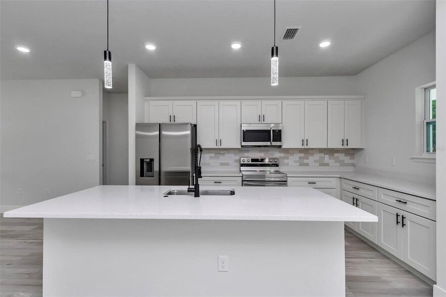 Move-in ready! This beautiful 3-bedroom, 2-bathroom home in Citrus Springs offers comfort, style, and a peaceful lifestyle along Florida s Nature Coast. The home features an open and inviting layout with plenty of natural light. The kitchen includes stainless steel appliances, wood cabinetry, and quartz countertops, creating a clean and modern look. Both bathrooms are finished with tile from floor to ceiling, and the primary suite includes a dual-shower setup for added convenience. The separate laundry room comes with a utility sink, making household tasks easier. Outdoor living is a highlight here, with a charming covered front porch and a spacious covered lanai at the back, perfect for relaxing or enjoying the Florida evenings.This home offers a high quality of life surrounded by natural beauty and easy access to local amenities. Schedule your appointment today!!