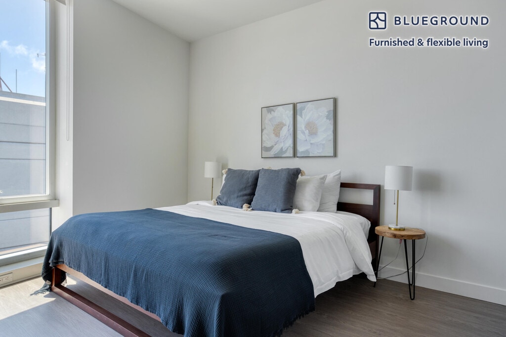 Discover the best of San Francisco, with this two bedroom apartment in SoMa. It’ll be easy to simply show up and start living in this furnished apartment with its fully equipped kitchen, living room, and our dedicated, on-the-ground support. (ID #SFO353) The advertised rate of $5,760/month is the lowest available price, based on a 2 month(s) and 27 day(s) stay with a move-in date of December 13, 2025. If you’re looking for a 1-year stay, the rate is $6,490/month. Rates vary depending on the duration of stay, season, and other parameters. For exact pricing and additional pricing components, please visit our website and enter your desired move-in and move-out dates. The rate is applicable when billed upfront; it can be higher if billed in multiple payments. Brokers are welcome to reach out. Were you looking for an unfurnished lease? Try Blueground instead and upgrade from unfurnished to furnished living: - Furnished at rates comparable to unfurnished - No setup or furniture costs - save thousands - Move-in ready - save time, just bring your suitcase Designed with you in mind Gorgeous furniture, fully equipped kitchen, smart TV, and a premium wireless speaker are just a few of the amenities you’ll find inside this two bedroom apartment. Ideally located in San Francisco, you’ll find a lot to love outside as well. When you’re ready to relax, you’ll be happy to discover every Blueground bedroom comes with superior quality mattresses, luxury linens, and cozy towels. We handle everything so you can simply show up and start living. This apartment also offers in-apartment laundry. Sleeping arrangements King Bed, 70.8in/180cm Queen Bed, 63in/160cm Amenities Building amenities unique to this two bedroom apartment include an on-site: - BBQ Area - Doorman - Dryer - Elevator - Swimming pool - Washing machine - Lounge - Parking - Pets allowed - Playground Arrival and ongoing support The entire apartment is yours to enjoy! Throughout your stay, you’ll have access to our Client Experience team through the Blueground App. You can schedule additional cleanings, submit maintenance requests, and view our neighborhood recommendations with just a few taps. We’ll share all details upon confirmation of your stay. Ideally Located This furnished apartment is located in South of Market, known as SoMa. A trendy, urban district, famous for its excellent art and museum scene. Home to a diverse mix of entrepreneurs and young families, this neighborhood offers hip bars, fine dinings and delicious coffee. Don’t miss the plethora of museums, including a visit to the San Francisco Modern Museum of Art. Baseball lovers frequently visit SoMa, as it is also home to the San Francisco Giants. Other things to note Building amenities may have an extra cost. This Blueground apartment has flexible lease options, allowing you to book it for one month, a year, or more. Pets are welcome, though weight limits and breed restrictions apply and may incur fees. We take great pride in ensuring every photo displayed is shot in our own units with our actual furnishings. That said, we regularly refresh our decor and furniture arrangement, which may differ from what’s pictured. Also note - There have been reported instances of homeless populations nearby [PL]