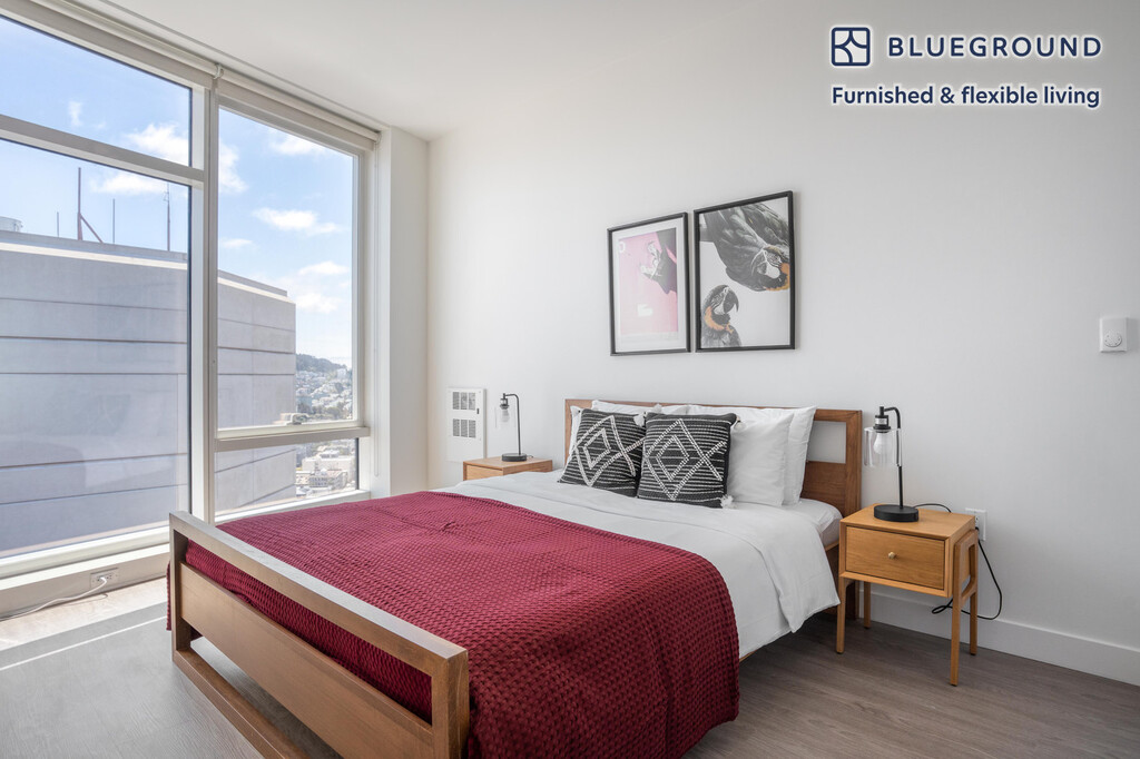 Feel at home wherever you choose to live with Blueground. You’ll love this cozy SoMa furnished studio apartment with its modern decor, fully equipped kitchen, and cheery living room. Ideally located, you’re close to all the best that San Francisco has to offer! (ID #SFO355) The advertised rate of $2,950/month is the lowest available price, based on a 2 month(s) and 19 day(s) stay with a move-in date of February 1, 2026. If you’re looking for a 1-year stay, the rate is $3,090/month. Rates vary depending on the duration of stay, season, and other parameters. For exact pricing and additional pricing components, please visit our website and enter your desired move-in and move-out dates. The rate is applicable when billed upfront; it can be higher if billed in multiple payments. Brokers are welcome to reach out. Were you looking for an unfurnished lease? Try Blueground instead and upgrade from unfurnished to furnished living: - Furnished at rates comparable to unfurnished - No setup or furniture costs - save thousands - Move-in ready - save time, just bring your suitcase Designed with you in mind Thoughtfully designed with bespoke finishes, modern furnishings, and a fully equipped kitchen, you’ll enjoy that “I’m home” feeling with this Blueground apartment. Whether you’re lounging in your charming living room streaming the latest and greatest entertainment on the smart TV or premium wireless speaker, or getting some well-earned rest on the superior quality mattress with luxury linens, you’ll fall in love with everything this SoMa apartment has to offer. This apartment also offers in-apartment laundry. Sleeping arrangements King Bed, 70.8in/180cm Amenities Building amenities unique to this studio apartment include an on-site: - BBQ Area - Doorman - Dryer - Elevator - Swimming pool - Washing machine - Lounge - Parking - Pets allowed - Playground Arrival and ongoing support The entire apartment is yours to enjoy! Throughout your stay, you’ll have access to our Client Experience team through the Blueground App. You can schedule additional cleanings, submit maintenance requests, and view our neighborhood recommendations with just a few taps. We’ll share all details upon confirmation of your stay. Ideally Located This furnished apartment is located in South of Market, known as SoMa. A trendy, urban district, famous for its excellent art and museum scene. Home to a diverse mix of entrepreneurs and young families, this neighborhood offers hip bars, fine dinings and delicious coffee. Don’t miss the plethora of museums, including a visit to the San Francisco Modern Museum of Art. Baseball lovers frequently visit SoMa, as it is also home to the San Francisco Giants. Other things to note Building amenities may have an extra cost. This Blueground apartment has flexible lease options, allowing you to book it for one month, a year, or more. Pets are welcome, though weight limits and breed restrictions apply and may incur fees. We take great pride in ensuring every photo displayed is shot in our own units with our actual furnishings. That said, we regularly refresh our decor and furniture arrangement, which may differ from what’s pictured. Also note - There have been reported instances of homeless populations nearby [SI]