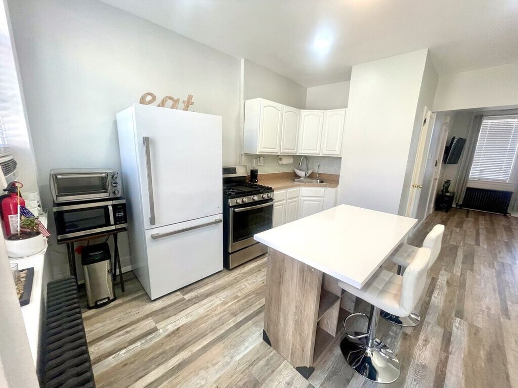 Renovated, 1st floor apartment is ready for new tenant in Garfield, NJ. The cozy unit offers eat in kitchen, living room, nice size bedroom and additional smaller bedroom that can be used as an office as well and full bathroom with tub. There is NO laundry, however the laundromat is near by. The unit comes with exclusive use of yard. There is also 1 parking spot in driveway. No smoking and no pets are allowed. Do Not Wait and Call Now! Credit, interview and proof of income required, along with 1.5 months security and 1 month real estate fee.