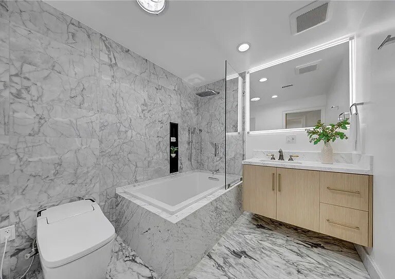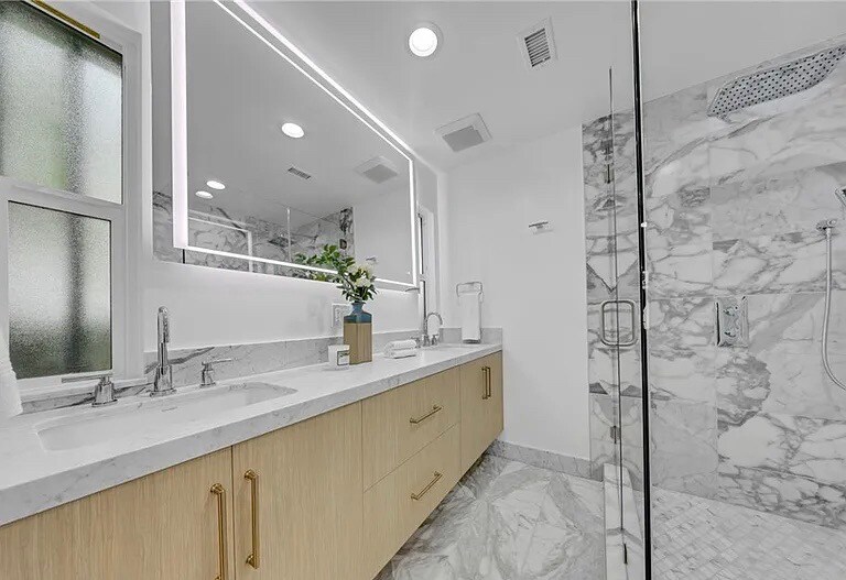 Property Id: 2280399 Step into this fully rebuilt and thoughtfully upgraded home. Designed for modern living, it features an open layout with soaring 10-foot ceilings, smooth-finish walls, and custom lighting throughout. The chef's kitchen is a standout, offering tall Nordic-style cabinetry, a sleek waterfall quartz island, and plenty of space for cooking and entertaining. The spacious primary suite is complete with a large custom closet and a spa-inspired bathroom. Enjoy luxurious finishes like statuary white marble, a double vanity, a walk-in shower, and a programmable bidet. The additional bedrooms feature mirrored closets, modern ceiling fans, and energy-efficient tinted windows. The hallway bathroom adds to the home's appeal with a Kohler soaking tub, Calacatta marble, and designer fixtures.