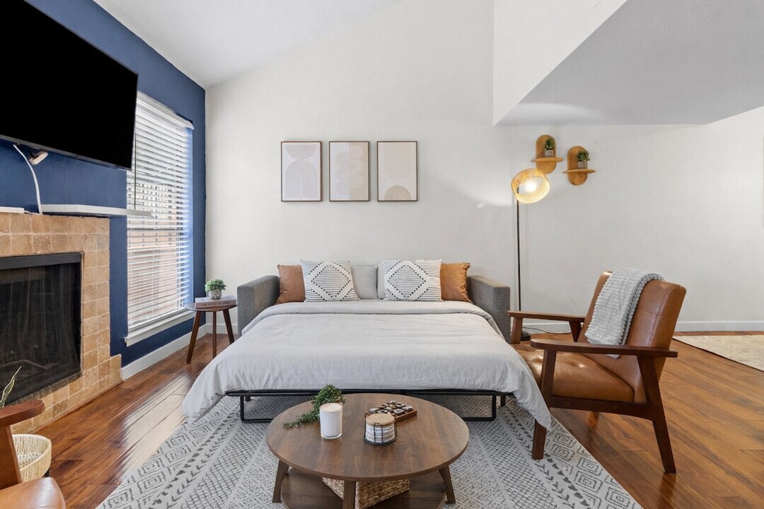 The advertised rate of $5,726/month is the lowest available price, based on a 30 day(s) stay with a move-in date of July 27, 2026. Rates vary depending on the duration of stay, season, and other parameters. For exact pricing and additional pricing components, please visit our website and enter your desired move-in and move-out dates. The rate is applicable when billed upfront; it can be higher if billed in multiple payments. Welcome to your South Austin getaway! Feel at home in this modern 2-bedroom townhouse, perfectly located near downtown, Zilker Park, and some of Austin’s best food, music, and nightlife. This home blends comfort, convenience, and location, making it ideal for couples, solo travelers, business guests, or longer stays. The living area flows seamlessly into the kitchen and dining space, making it easy to cook, unwind, or spend a cozy evening in. The kitchen is fully equipped with a stove, oven, refrigerator/freezer, microwave, coffee maker, kettle, toaster, pots, pans, cooking essentials, plates, glassware, and silverware. Enjoy access to a private patio and shared outdoor seating areas within the townhouse community. Free on-site parking is available. Enjoy walkable access to local cafés and restaurants, or relax at home after a day exploring the city. South Congress (SoCo), Downtown Austin, and Lady Bird Lake Trail are all within a 5-minute drive. Zilker Park & Barton Springs and ACL / Zilker Events are 7 minutes away, and Austin Airport (AUS) is a 12-minute drive. This home is part of a quiet townhouse complex, and you may occasionally hear normal neighborhood sounds. Parties or large gatherings are strictly not allowed, and a $2000 fine will apply. There is a $300 fee per undisclosed/unauthorized guest, a $300 fee per undisclosed/unauthorized pet, a $100 minimum fee for stained or damaged bed sheets, pillows, or linens, a flat $150 fee for a stained or damaged couch, a $70 minimum charge for stolen or missing items, a $70 minimum cleaning fee for excessive mess left after checkout, a $1400 minimum fine for smoking inside or outside (including patios, balconies, and entryways), a $50 fine per occurrence for trash/garbage bags left outside the unit or door, and a $25 fee for every additional 30 minutes past checkout time for unauthorized late checkouts. [SI]