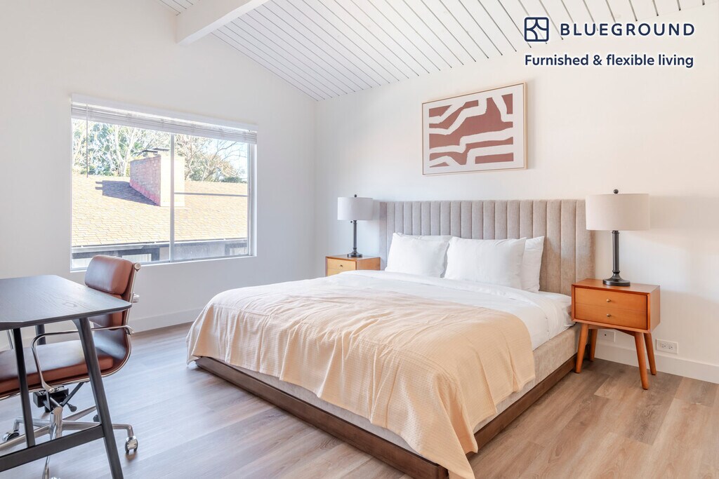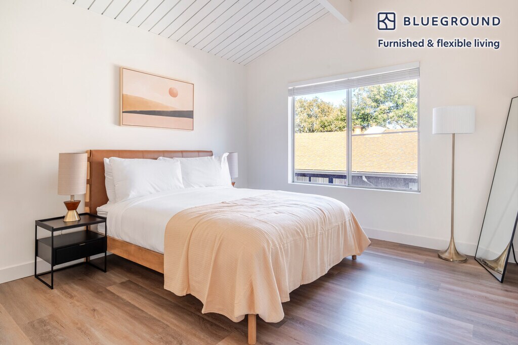 Discover the best of Palo Alto, with this two bedroom apartment in Crescent Park. It’ll be easy to simply show up and start living in this fashionably furnished apartment with its fully equipped kitchen, lovely living room, and our dedicated, on-the-ground support. (ID #SFO2115) The advertised rate of $6,860/month is the lowest available price, based on a 11 month(s) and 29 day(s) stay with a move-in date of April 1, 2026. Rates vary depending on the duration of stay, season, and other parameters. For exact pricing and additional pricing components, please visit our website and enter your desired move-in and move-out dates. The rate is applicable when billed upfront; it can be higher if billed in multiple payments. Brokers are welcome to reach out. Were you looking for an unfurnished lease? Try Blueground instead and upgrade from unfurnished to furnished living: - Furnished at rates comparable to unfurnished - No setup or furniture costs - save thousands - Move-in ready - save time, just bring your suitcase Designed with you in mind Thoughtfully designed with bespoke finishes, modern furnishings, and a fully equipped kitchen, you’ll enjoy that “I’m home” feeling with this Blueground apartment. Whether you’re lounging in your charming living room streaming the latest and greatest entertainment on the smart TV or premium wireless speaker, or getting some well-earned rest on the superior quality mattress with fully stocked linens, you’ll fall in love with everything this Crescent Park apartment has to offer. Sleeping arrangements King Bed, 70.8in/180cm Queen Bed, 63in/160cm Amenities Building amenities unique to this two bedroom apartment include an on-site: - Dryer in building - Washing machine in building - Parking - Pets allowed Arrival and ongoing support The entire apartment is yours to enjoy! Throughout your stay, you’ll have access to our Client Experience team through the Blueground App. You can schedule additional cleanings, submit maintenance requests, and view our neighborhood recommendations with just a few taps. We’ll share all details upon confirmation of your stay. Other things to note This Blueground apartment has flexible lease options, allowing you to book it for one month, a year, or more. Pets are welcome, though weight limits and breed restrictions apply and may incur fees. Parking is offered based on availability and is subject to a fee. Please keep in mind that this is a walk up building. We take great pride in ensuring every photo displayed is shot in our own units with our actual furnishings. That said, we regularly refresh our decor and furniture arrangement, which may differ from what’s pictured. [SI]