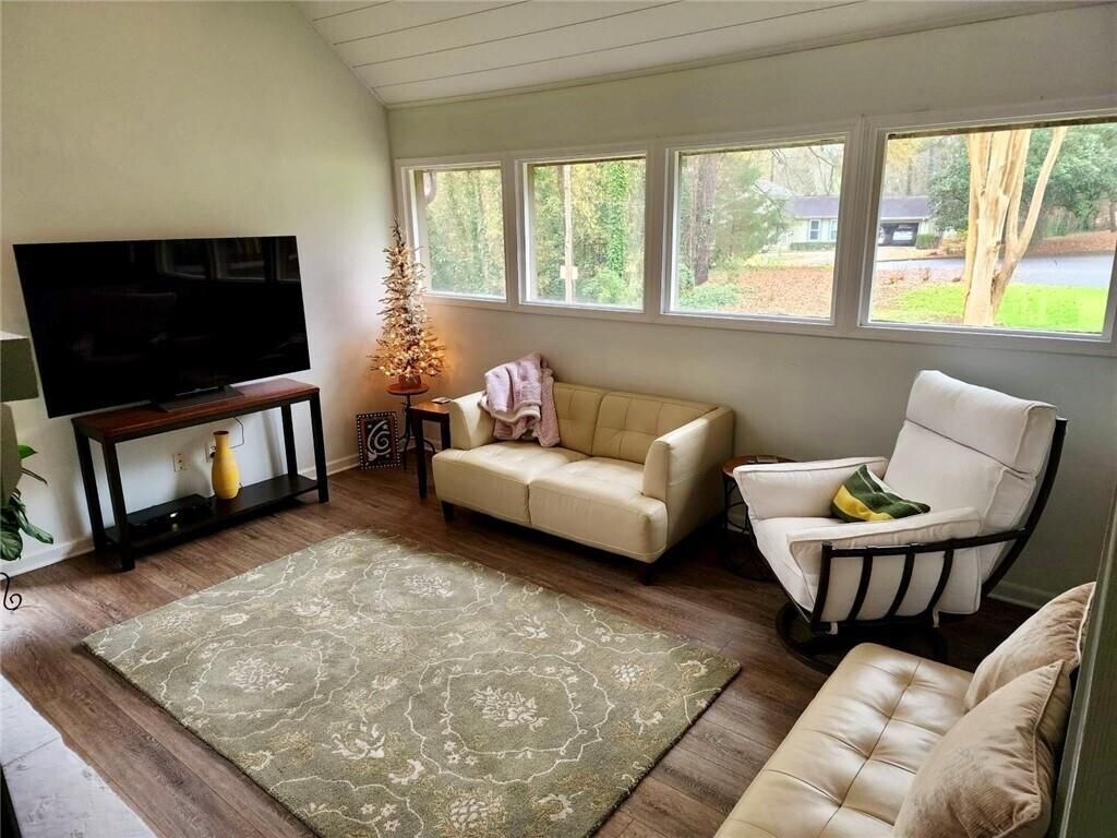 Just minutes from historic downtown Roswell, this beautifully updated 3-bedroom, 2-bathroom mid-century-style home offers the ideal mix of suburban tranquility and urban convenience. Situated in a top-rated school district, with easy access to vibrant shops, restaurants, cafes, and more, this property provides everything you need for an enriched lifestyle. The interior boasts spacious, light-filled living areas with vaulted ceilings and an open-concept layout, perfect for modern living. The kitchen combines style and functionality with quartz countertops, stainless steel appliances, including an induction range, and seamless access to a large deck overlooking a substantial, 3/4 acre (+/-), private backyard with natural landscaping. Tucked away on a quiet cul-de-sac, this home offers peace and privacy while keeping you close to the charm and energy of downtown Roswell. Ready for you to move in and enjoy!