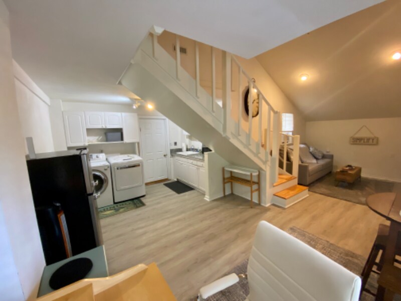ID de propiedad: 1261847 Su apartamento: Entrada privada, junto al lateral de la casa principal. No hay espacio compartido. Lavadora y secadora en el apartamento. Disposición estilo loft con dormitorio y baño completo en la planta superior. Cama de espuma viscoelástica tamaño queen. Ducha independiente. Sala de estar, espacio de trabajo y kitchenette en la planta baja. Acceso a una gran piscina de estilo mediterráneo (con lanai completamente cerrado). Apto para perros pequeños. Patios laterales y traseros con cerca. Todos los servicios públicos están incluidos. Cocina pequeña: Horno de microondas, cafetera, tostadora, combinación de horno Airfryer-Toaster, refrigerador de tamaño 3/4 de acero inoxidable con congelador, quemador doble portátil, todos los utensilios básicos de cocina y comida, isla rodante. - SmartTV con Roku -Espacio de trabajo exclusivo con escritorio para trabajar desde casa, WiFi de alta velocidad. -Aspirador inalámbrico Shark - HVAC exclusivo para controlar su propia temperatura El vecindario: Residencia privada, segura, limpia y tranquila en un área de primer nivel a lo largo de la cadena de lagos Butler Chain of Lakes. Calles arenosas, la propiedad se encuentra entre tres hermosos lagos en el pintoresco distrito del centro de Windermere.