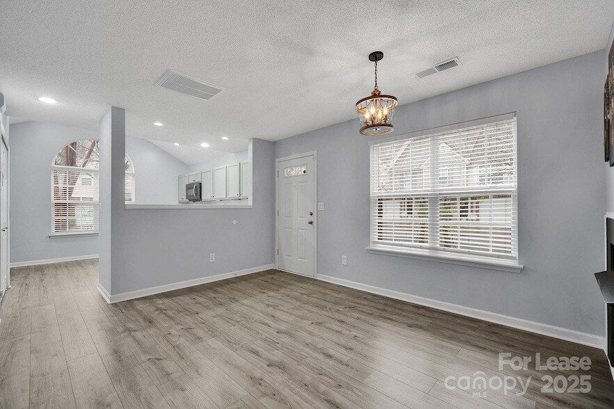 Welcome home to this bright and spacious end-unit townhouse featuring 2 bedrooms, 2.5 baths, a 1-car garage, and a private 1-car driveway. The main level offers updated LVP flooring, high ceilings, and an open living area with large windows that fill the home with natural light. The kitchen features updated countertops and cabinetry, stainless steel appliances, and plenty of storage. Upstairs you'll find a versatile loft/bonus area with high-quality carpet perfect for an office or second living space along with both bedrooms. The primary suite includes vaulted ceilings, a dual-sink vanity, a large walk-in closet, and a spacious bathroom. Washer, dryer, and all appliances are included, and water is covered in the rent. Neutral paint runs throughout the home for an easy, move-in-ready feel. As an end unit, you share only one wall. Community amenities include a large pool, manicured sidewalks, streetlights, walking trails, and a pond. Conveniently located minutes from shopping, Uptown Charlotte, nature preserves, Mountain Island Lake, Lake Norman, CLT Airport, and quick access to I-77 and I-485. APPLY TODAY!
