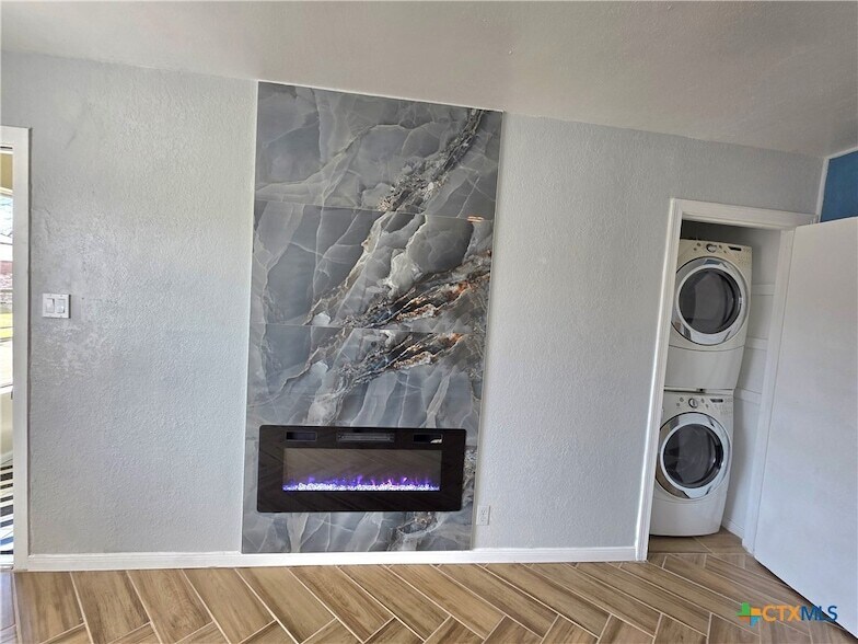 Beautifully Updated Townhome/Quadplex High-End Finishes Throughout Experience luxury living from the moment you walk through the door of this stunningly remodeled townhome. Designed with modern elegance and comfort in mind, this residence features: A high-tech, multi-setting electric fireplace that sets the perfect ambiance, sleek granite kitchen countertops paired with modern appliances, built-in microwave, and electric range, a spa-inspired bathroom with luxurious stone surround, lighted shampoo niche, multifunctional shower head, and body sprayer unit, stackable front-loading washer and dryer (included) for added convenience . Every detail reflects quality craftsmanship and upscale design.